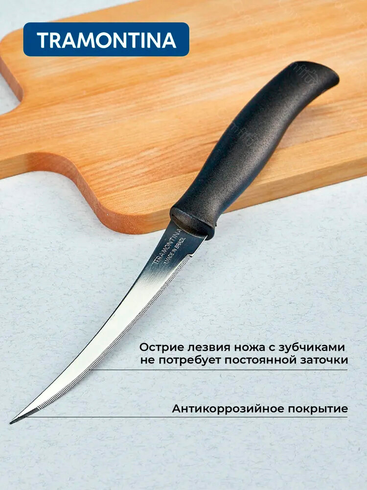 Ниже Вы можете прочитать отзывы на TRAMONTINA Нож Athus для помидоров/цитрусовых, 12,5 см, черный 23088/905-TR, ознакомится с подробными характеристиками, посмотреть интересные обзоры и фотографии на TRAMONTINA Нож Athus для помидоров/цитрусовых, 12,5 см, черный 23088/905-TR.