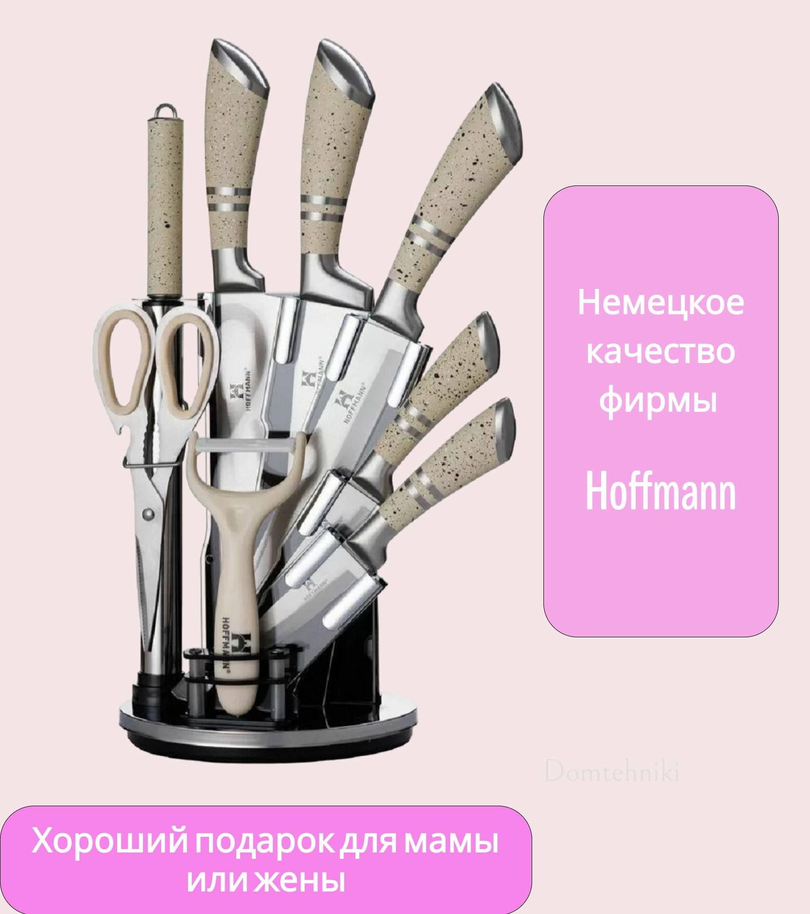 СохранитьНабор ножей Hoffmann с подставкой, модель НМ6622, 9 предметов, бежевые интересное: