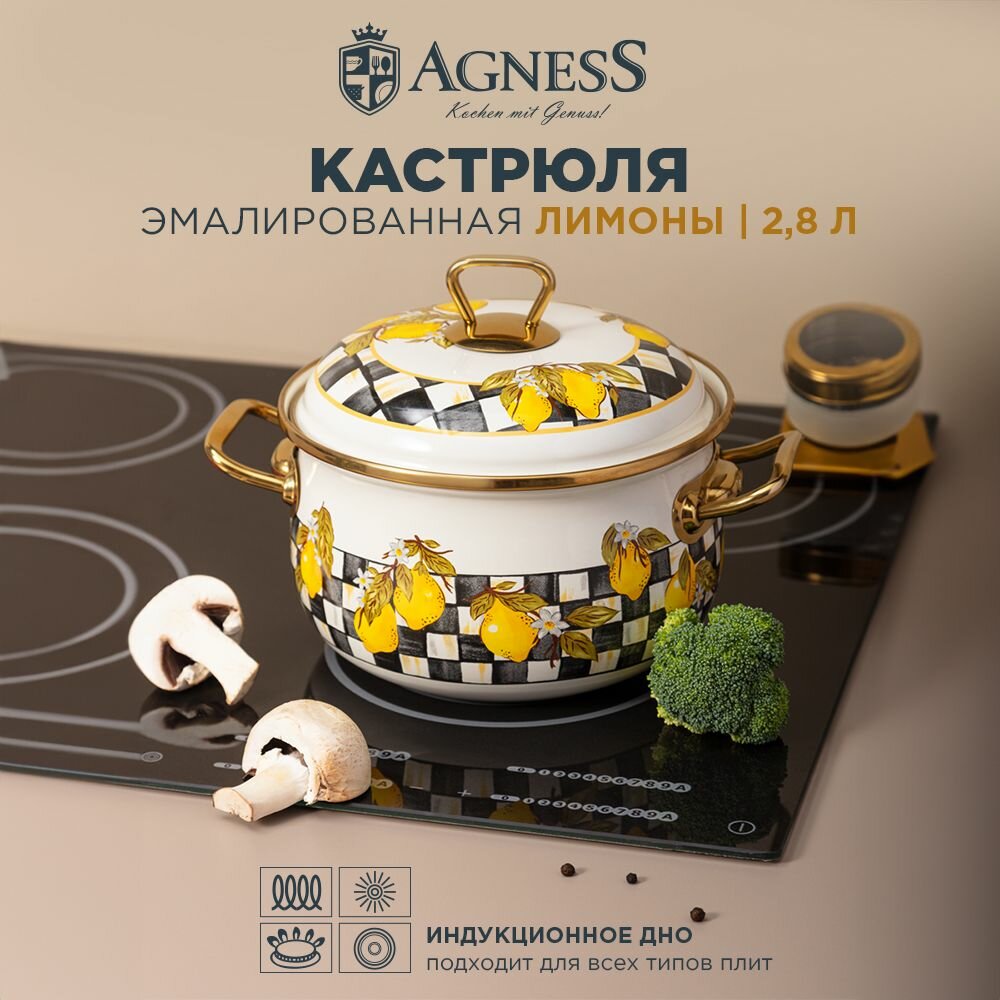 Купить Кастрюля эмалированная agness с крышкой, лимон 2,8л, диа.18 см подходит для индукцион.пл