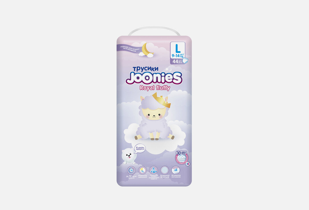 Подгузники-трусики JOONIES Royal Fluffy, размер L (9-14 кг), 44 шт.