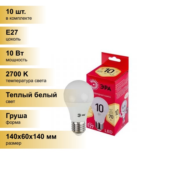 (10 шт.) Светодиодная лампочка ЭРА ECO ЛОН A60 E27 10W(800Lm) 2700 2K 140х60 R A60-10W-827-E27 0457 Теплый белый. Цоколь E27 интересное: