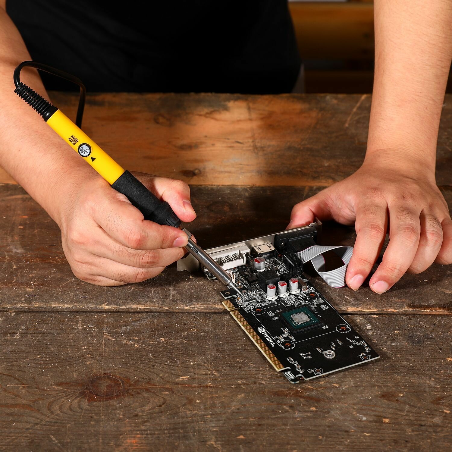 | Комплектация | паяльник 60 Вт, 220 В (1 шт.), комплект из 5 типов наконечников (конус, игла, клин, скос и ножевидное), держатель для паяльника (1 шт.), губка для очистки паяльного жала (1 шт.), припой на катушке (1 шт.), оловоотсос для припоя (1 шт.), пенал на молнии (1 шт.). |