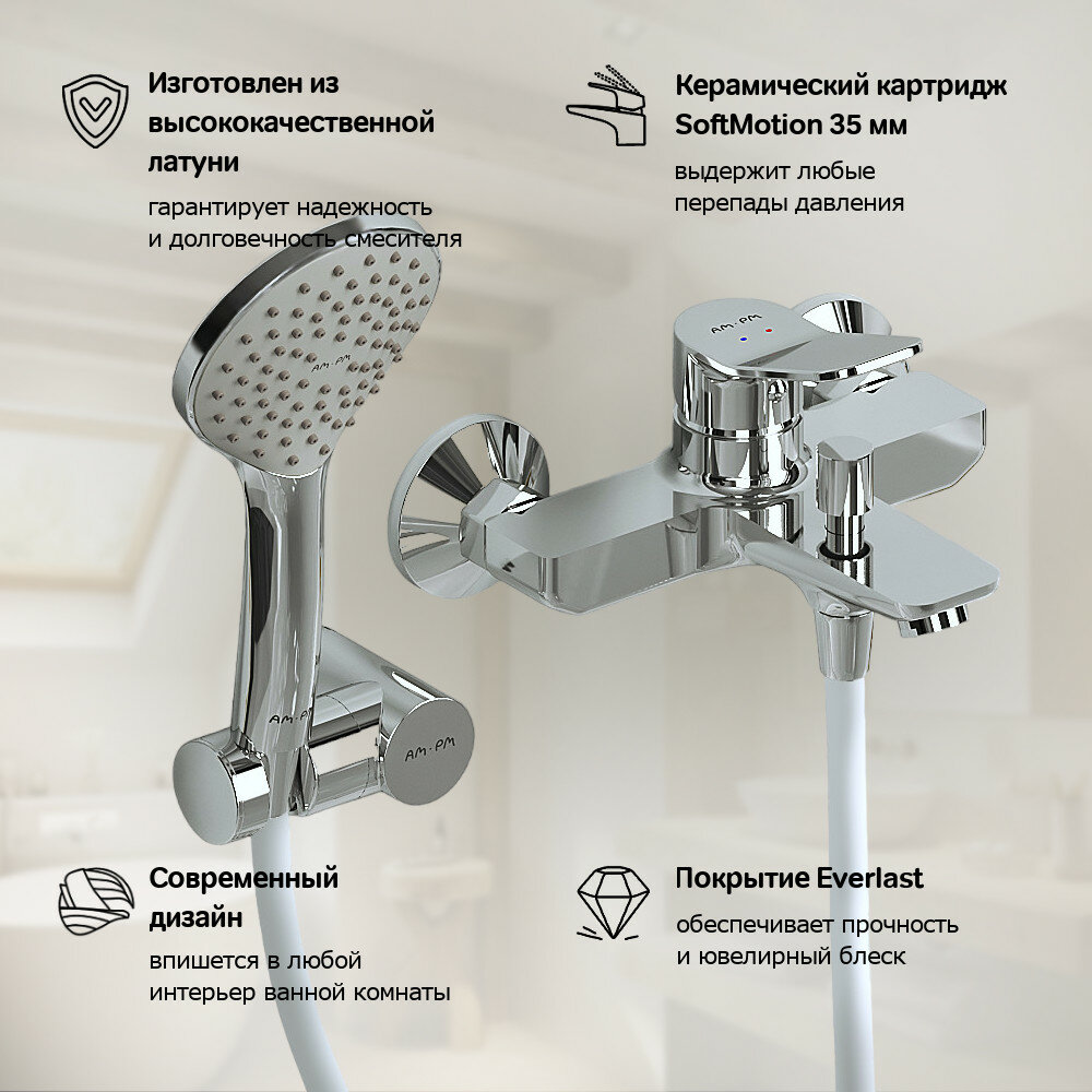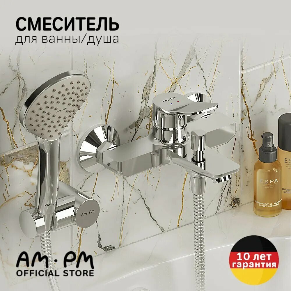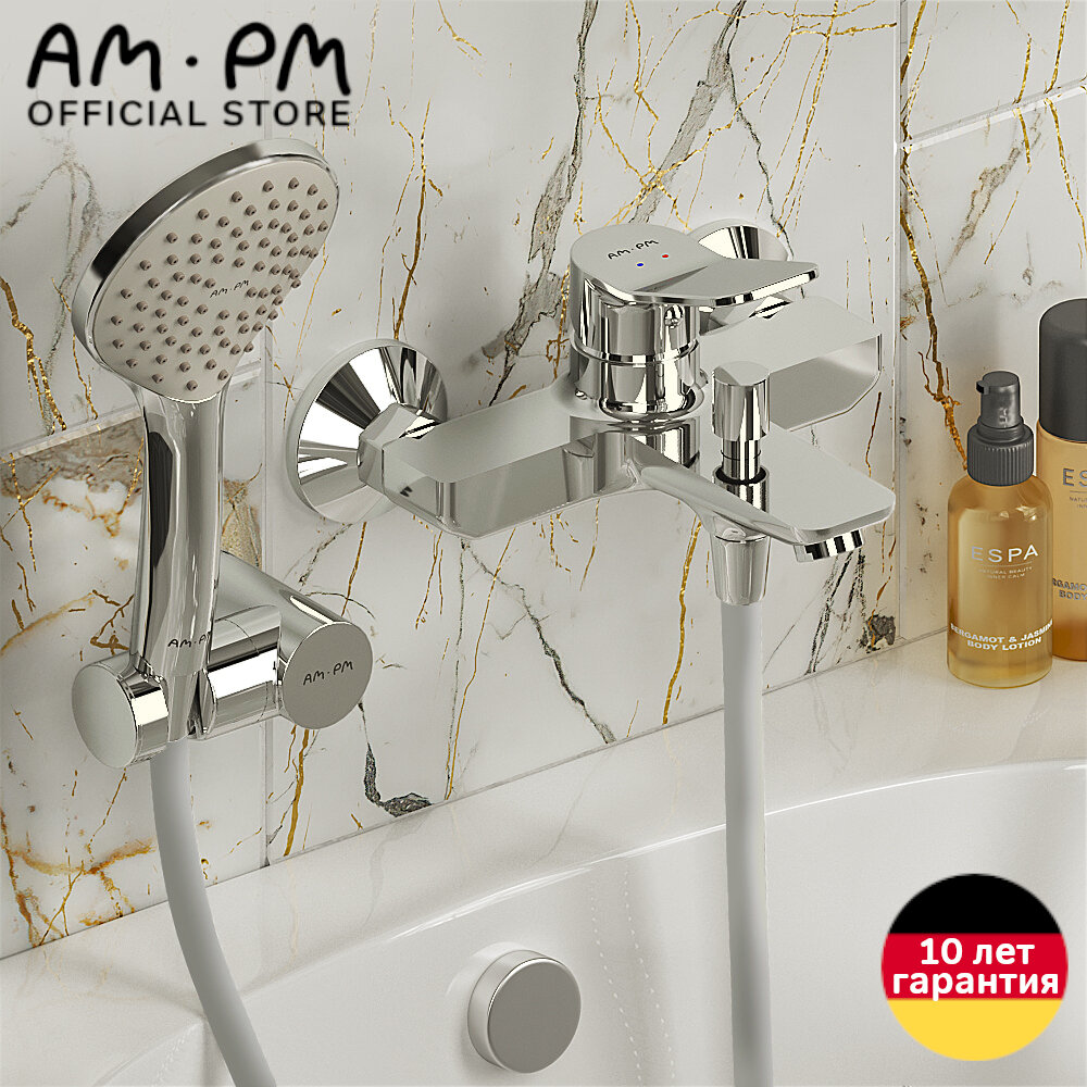Смеситель для ванны с душем AM.PM Brava, кран для ванной, короткий излив 164 мм, смесители, покрытие Everlast, латунь, Гарантия 10 лет интересное: