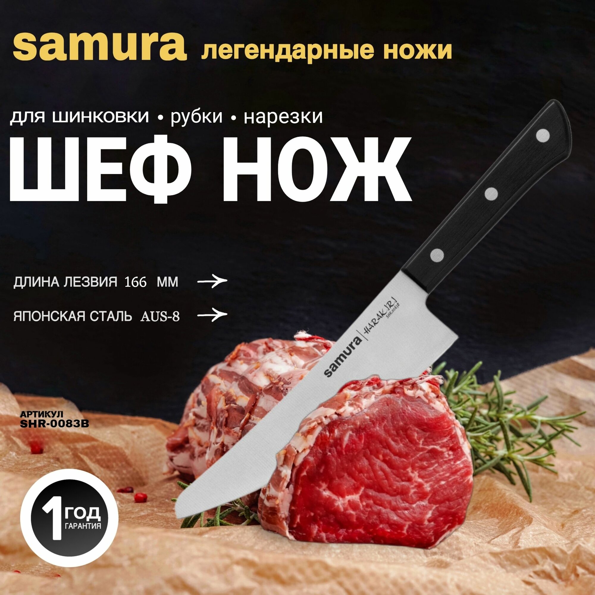 Шеф нож кухонный малый Samura HARAKIRI SHR-0083B, 16.6 см, черный интересное: