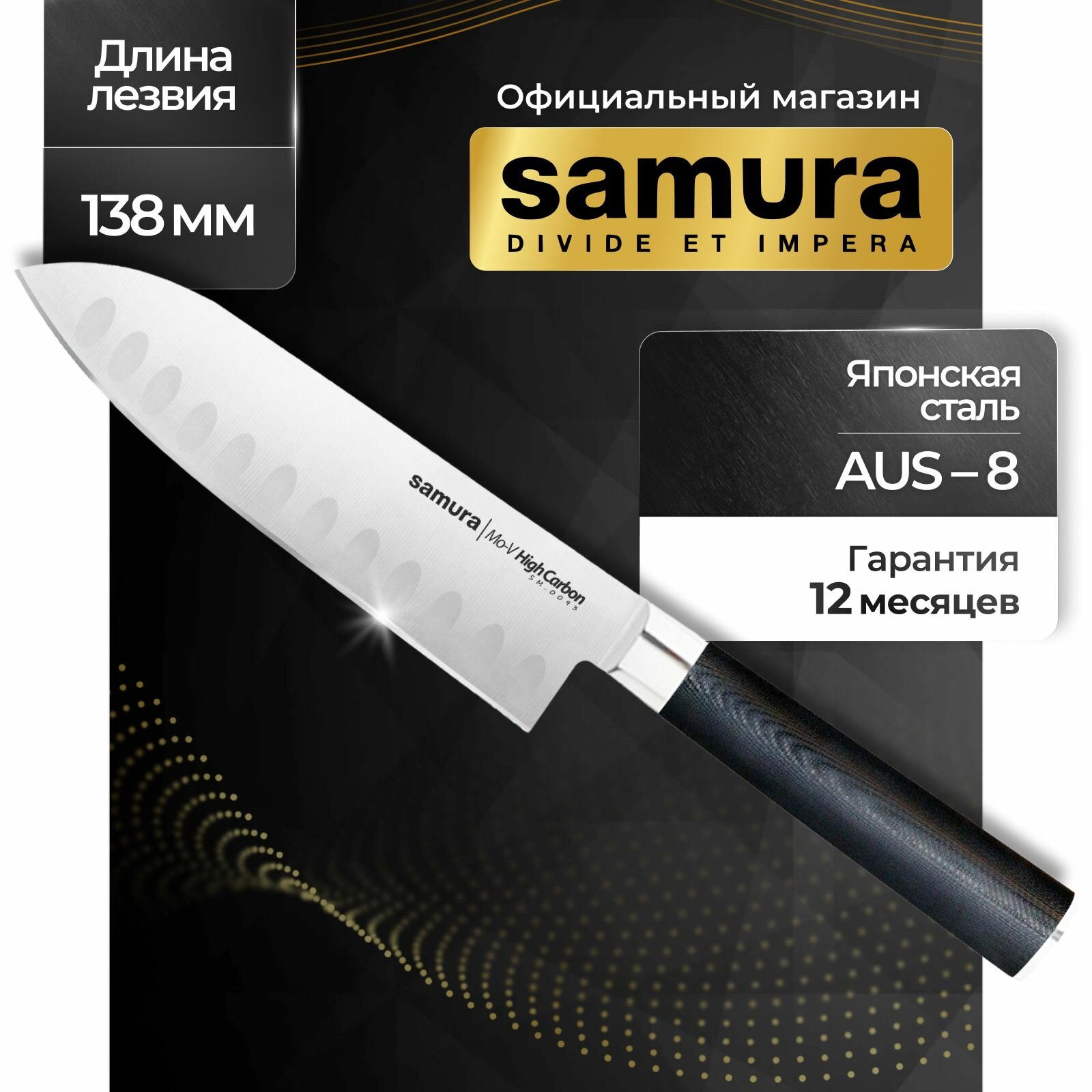 Поварской кухонный нож сантоку Samura 13.8 см, японская ножевая нержавеющая сталь Aus 8, SM-0093/Y интересное:
