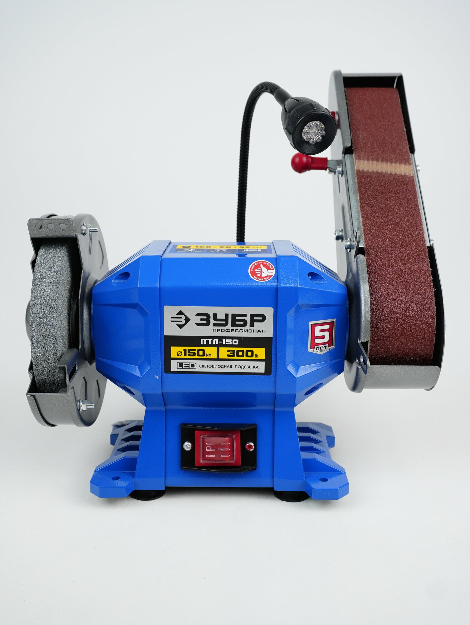 Точильный станок с шлифовальной лентой ЗУБР ПТЛ-150 (300Вт, 2950 об/мин, 1 диск 150мм, лента 50х686мм, подсветка)