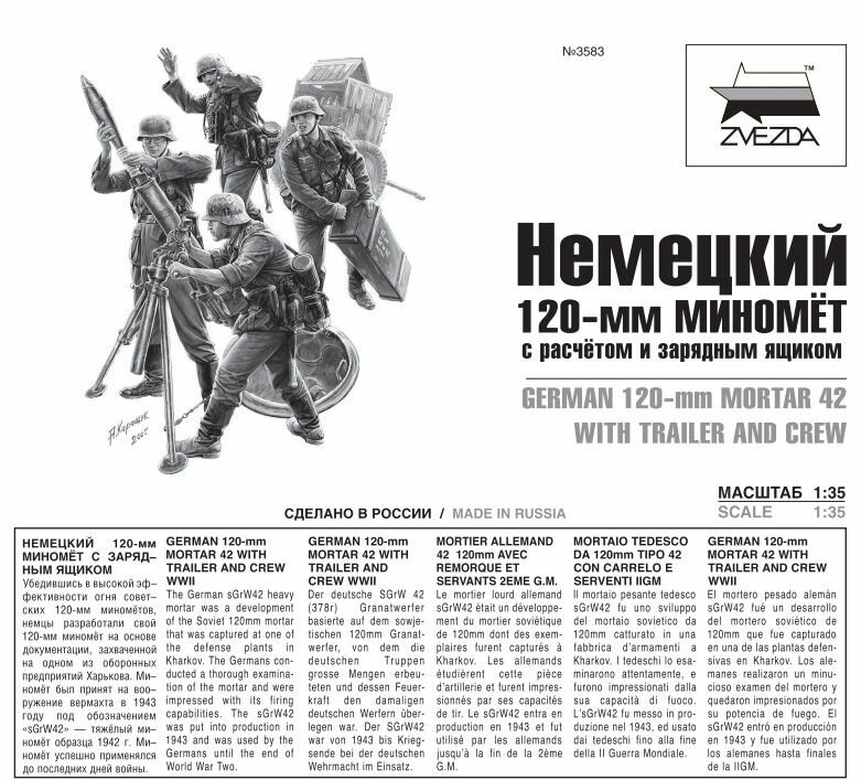 Сборная модель ZVEZDA Немецкий 120-мм миномёт с расчетом и зарядным ящиком (3583) 1:35