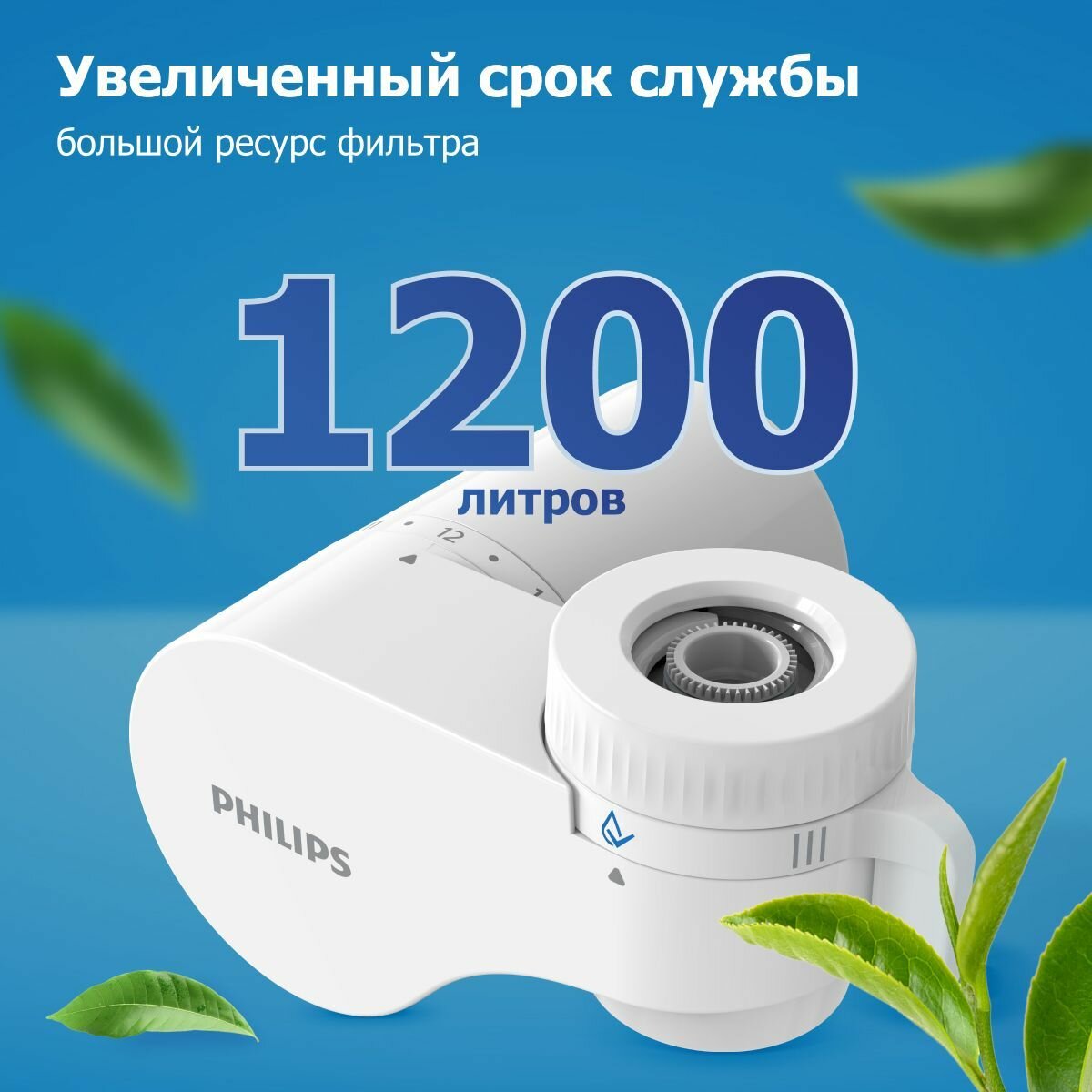 Фильтр для очистки воды на кран Philips AWP3703/10, скорость 2 л/мин, ресурс 1000 л, 2 режима воды, механизм QuickTwist, таймер замены картриджа, белый