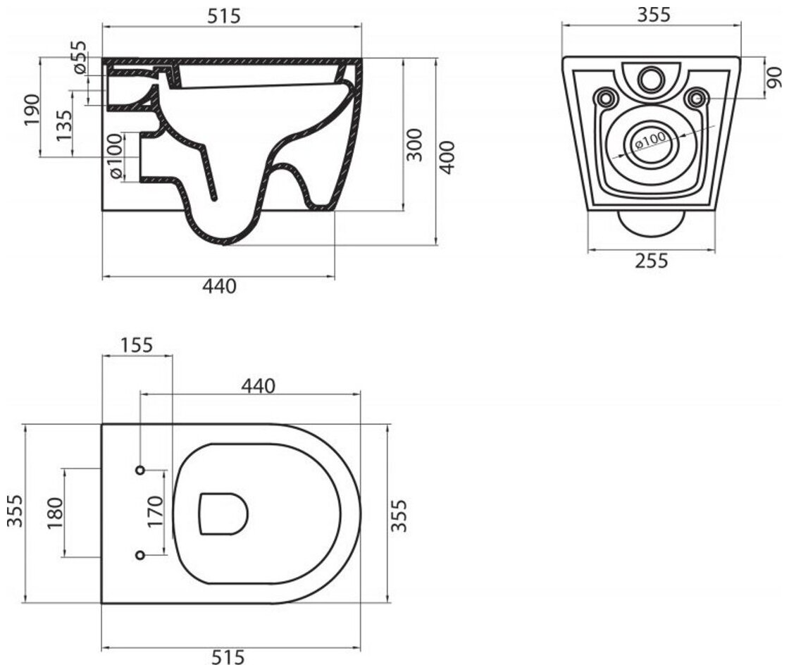 Чаша подвесного унитаза безободкового с креплением BB105CHR