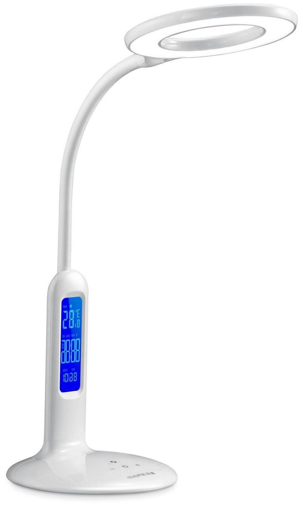 Camelion Настольные светильники KD-823 C01 бел.LED Свет-к наст.,8 Вт,230В, 500лм,сенс, термометр, рег.ярк и цвет.темп.