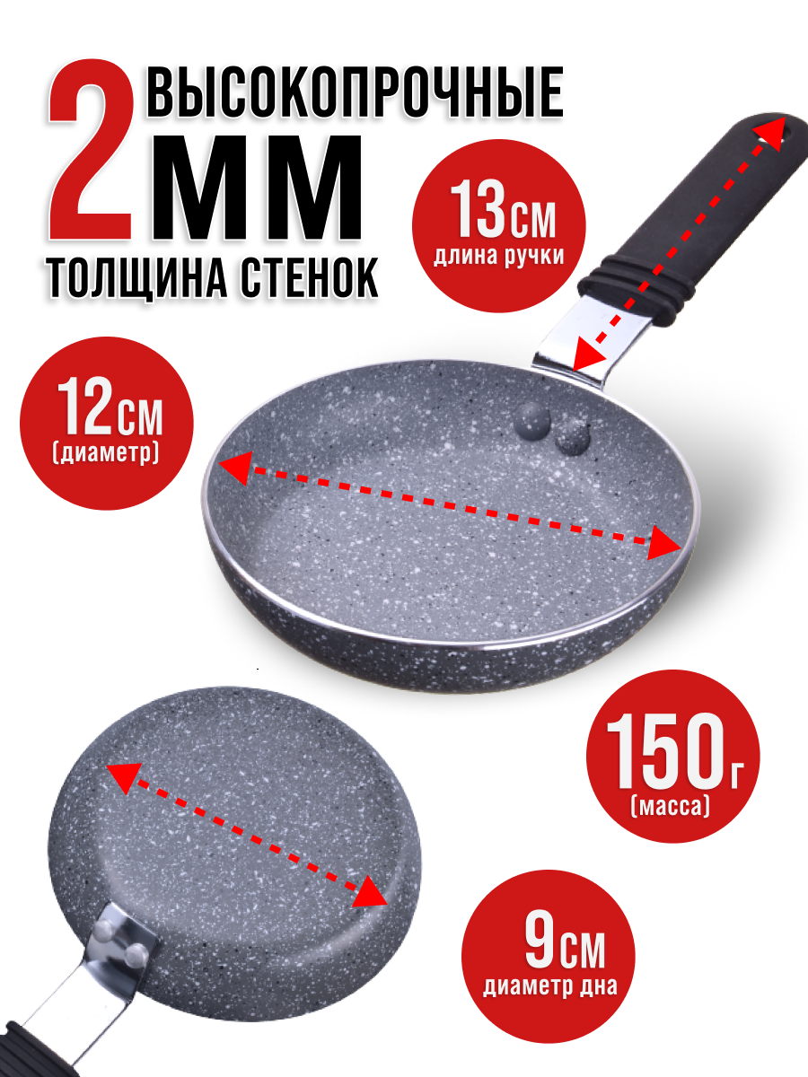 | Минусы: | Сковородка 12 см опрокидывается на плите из-за длинной ручки |