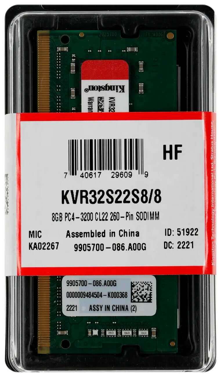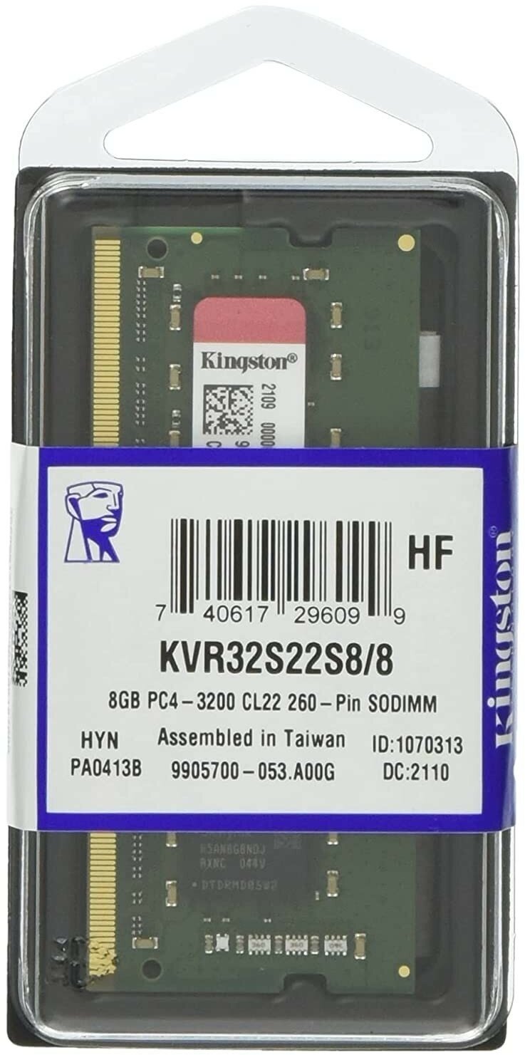 Kingston Модуль оперативной памяти SO-DIMM 8ГБ DDR4 SDRAM Kingston ValueRAM KVR32S22S8/8 (PC25600, 3200МГц, CL22) (ret)