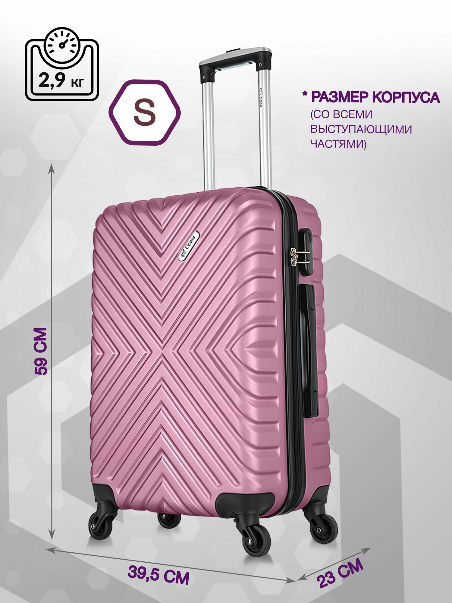 Чемодан маленький L'Case New Delhi (XS) розовый, 52х34х19.5, арт:Ch0816