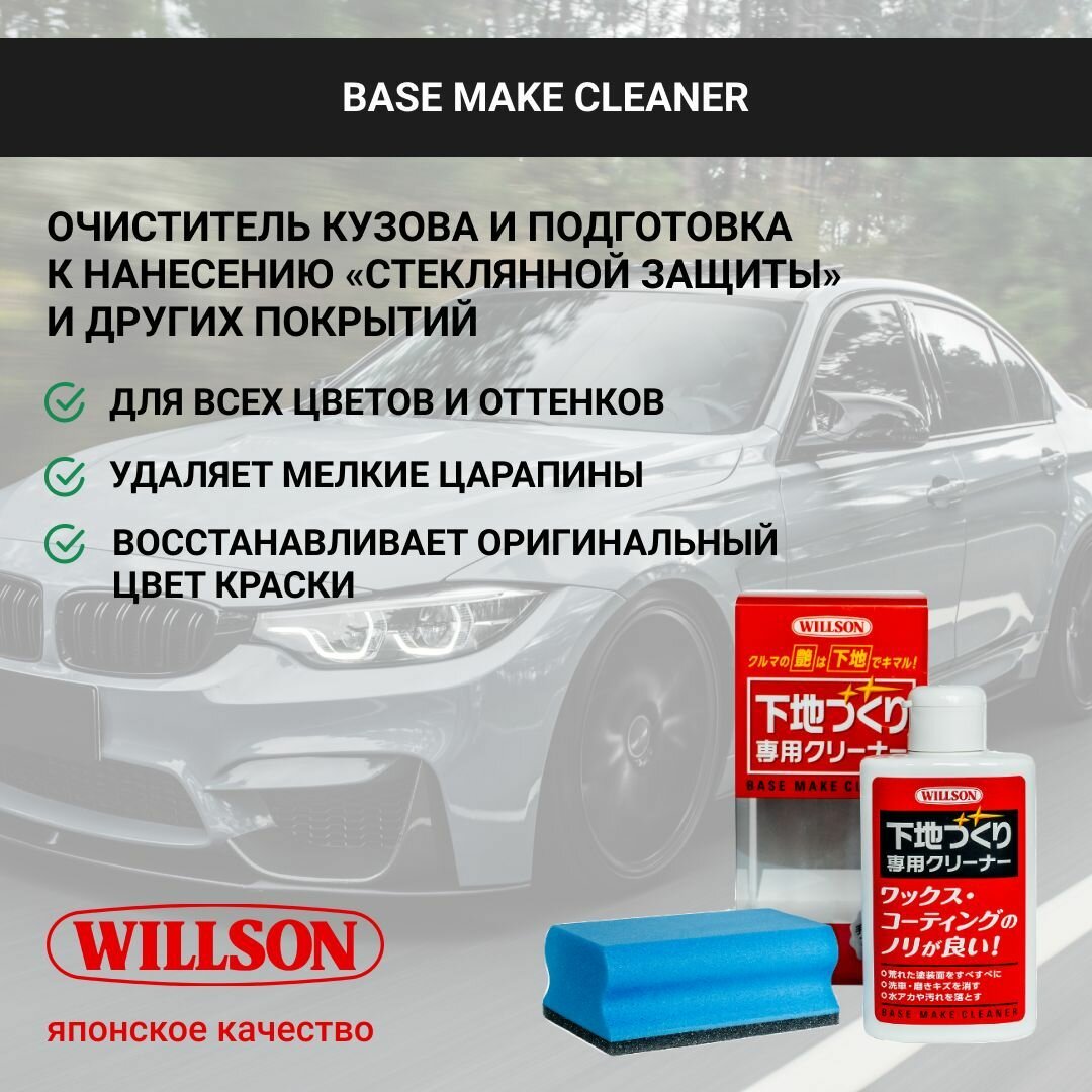 Очиститель кузова Willson Base Make Cleaner, для подготовки поверхности к нанесению жидкого стекла, с ароматом Marine Squash, бутылка 125мл, (+губка), арт. WS-02080