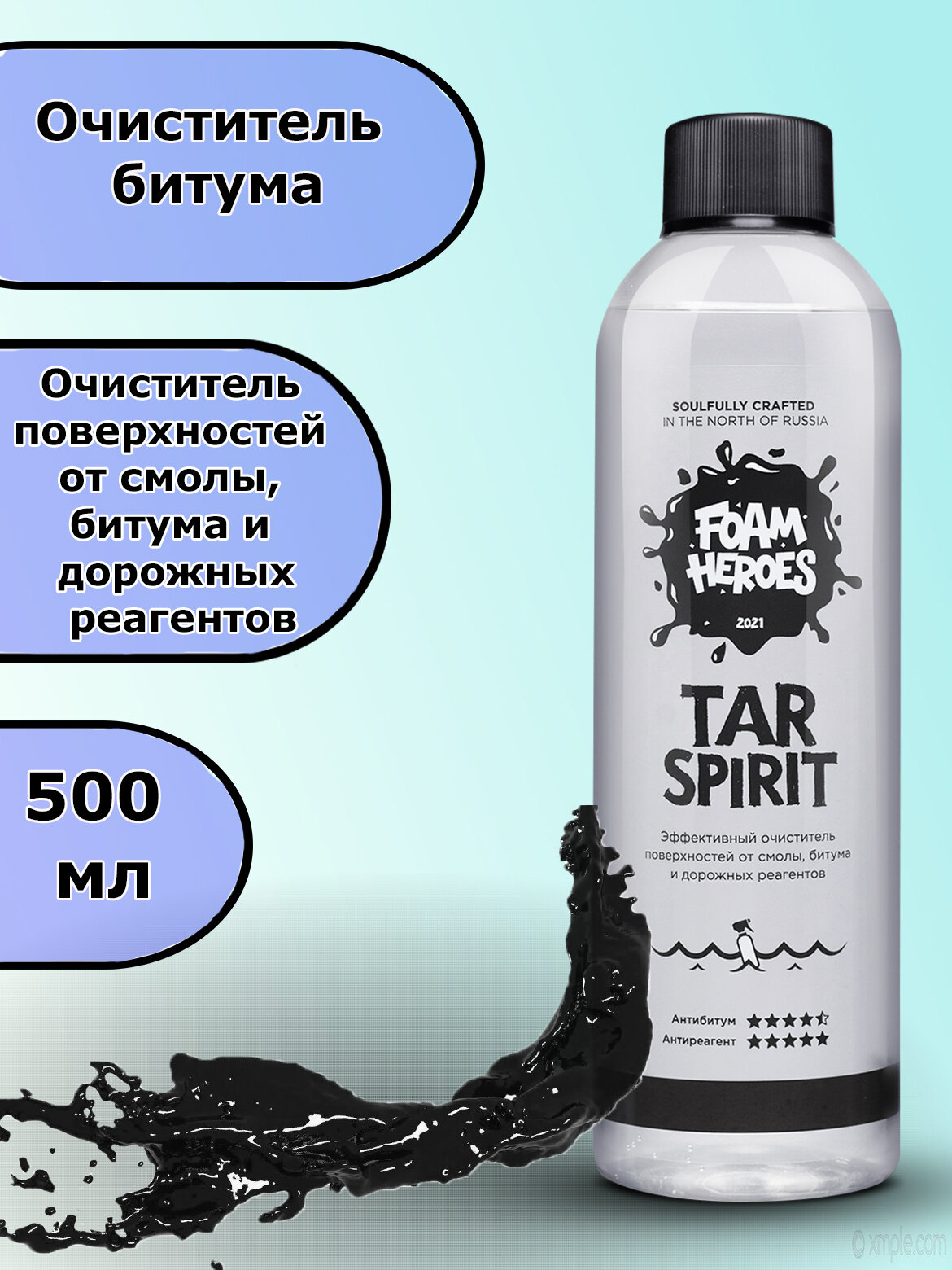 Foam Heroes / Tar Spirit / Антибитум для автомобиля / Очиститель битума / Очиститель смолы и дорожного реагента, 500мл