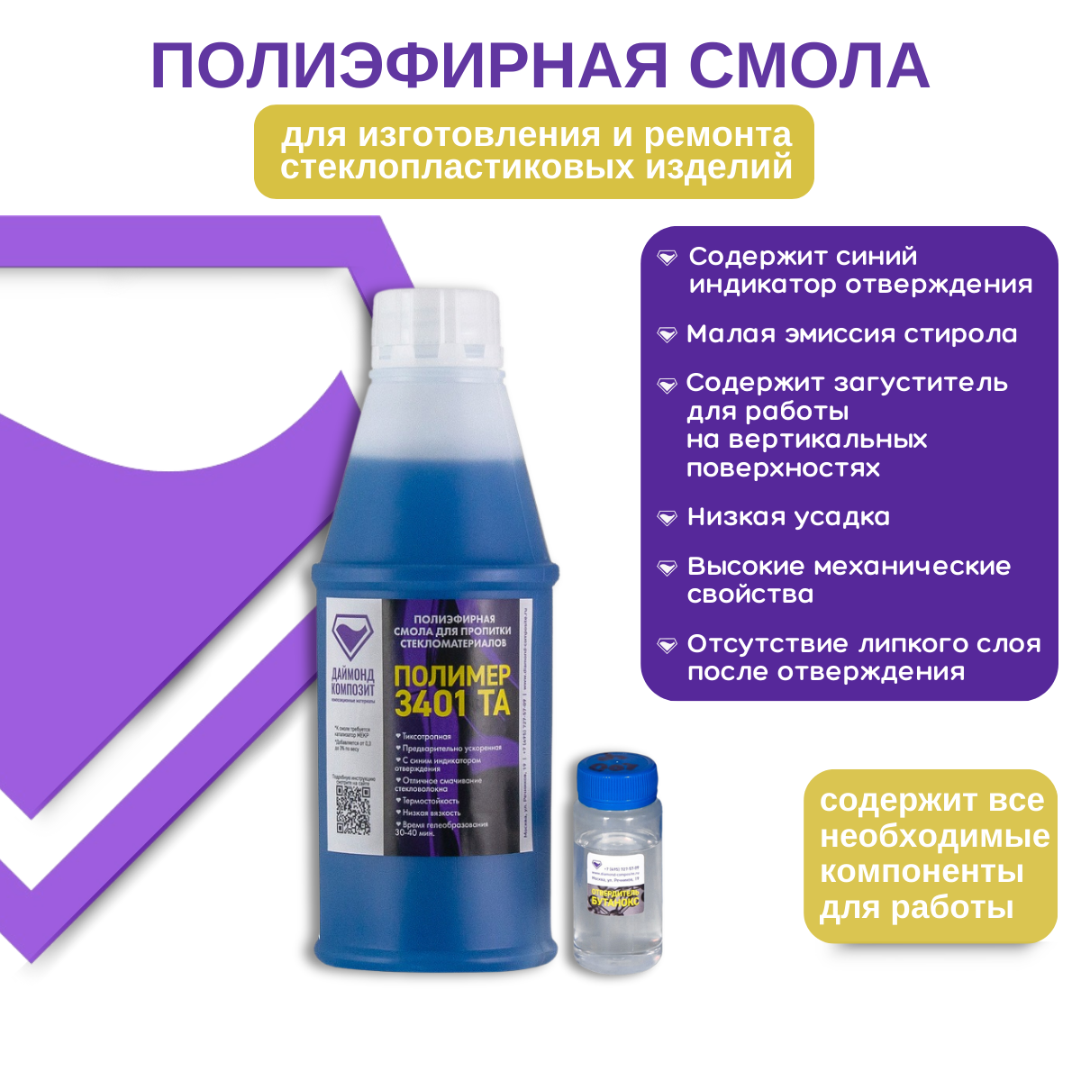 Полиэфирная смола полимер 3401 ТА 1 кг. с отвердителем в комплекте