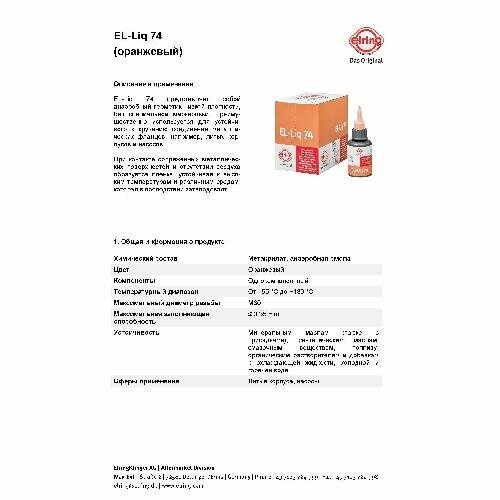 герметик EL-Liq 74 ORANGE 50ml анаэробный поверхностный оранжевый -55..+180C ELRING 461682 1шт