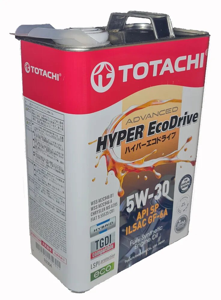 Масло моторное Totachi Hyper Ecodrive 5w30 синтетическое, API SP, ILSAC GF-6A, для бензинового двигателя, 4л, арт. E0304
