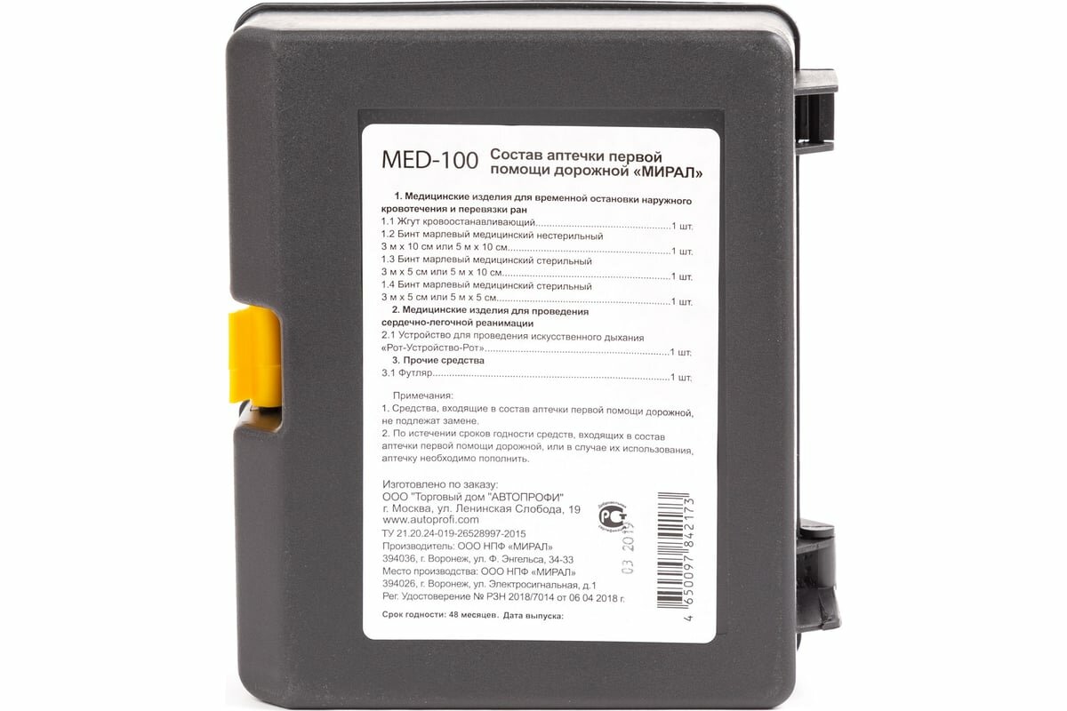Аптечка первой помощи дорожная AUTOPROFI MED-100 ТУ 21.20.24-019-26528997-2015