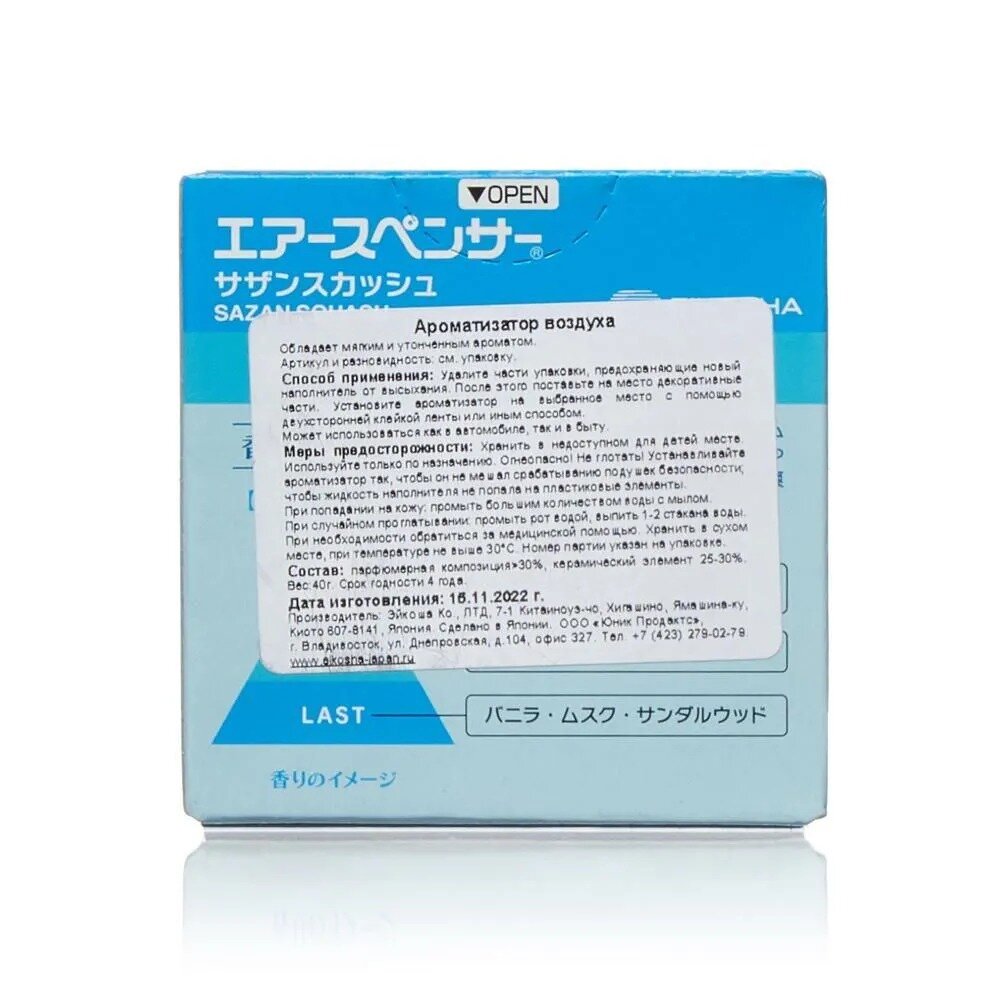 EIKOSHA ароматизатор для машины и дома меловой Air Spenser - MARINE BLUE SQUASH / Свежесть океана, автомобильный парфюм, арт. A106