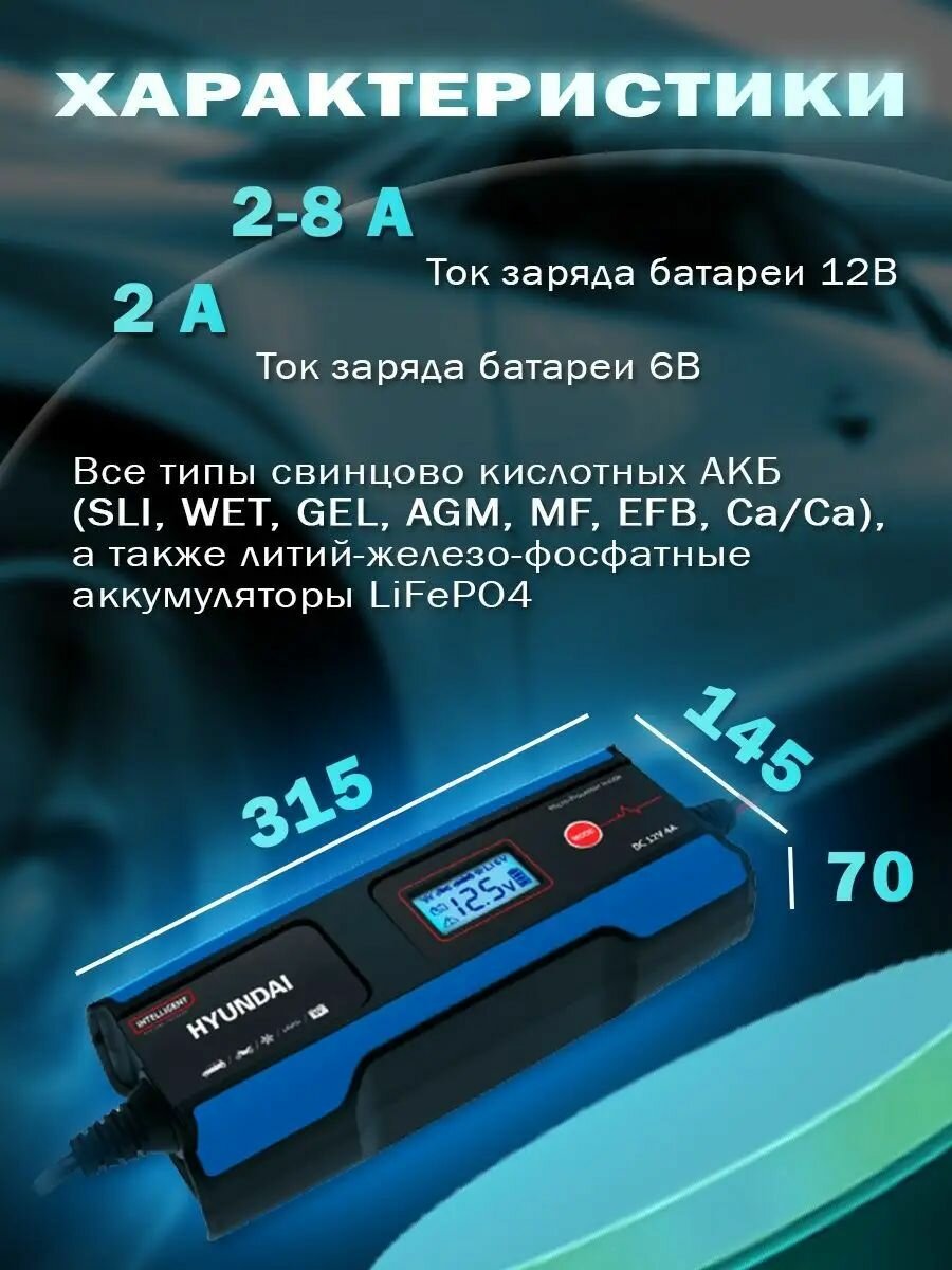 Зарядное устройство Hyundai HY 810, для АКБ 12 В и 6 В