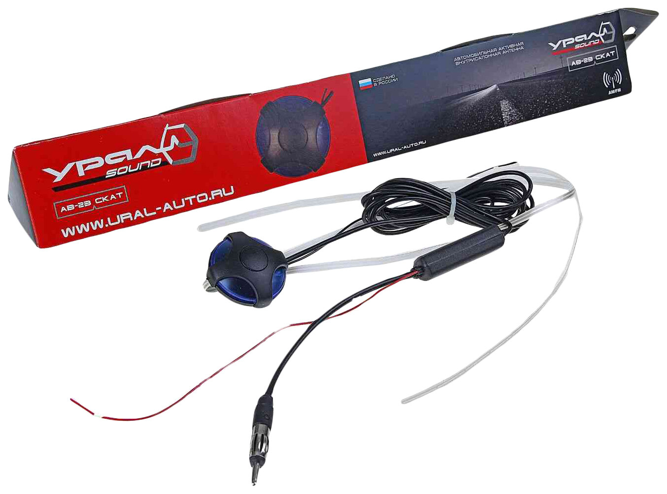 Автомобильная антенна урал AB-23 Скат, активная, помехозащиенный кабель, FM, УКВ, АМ