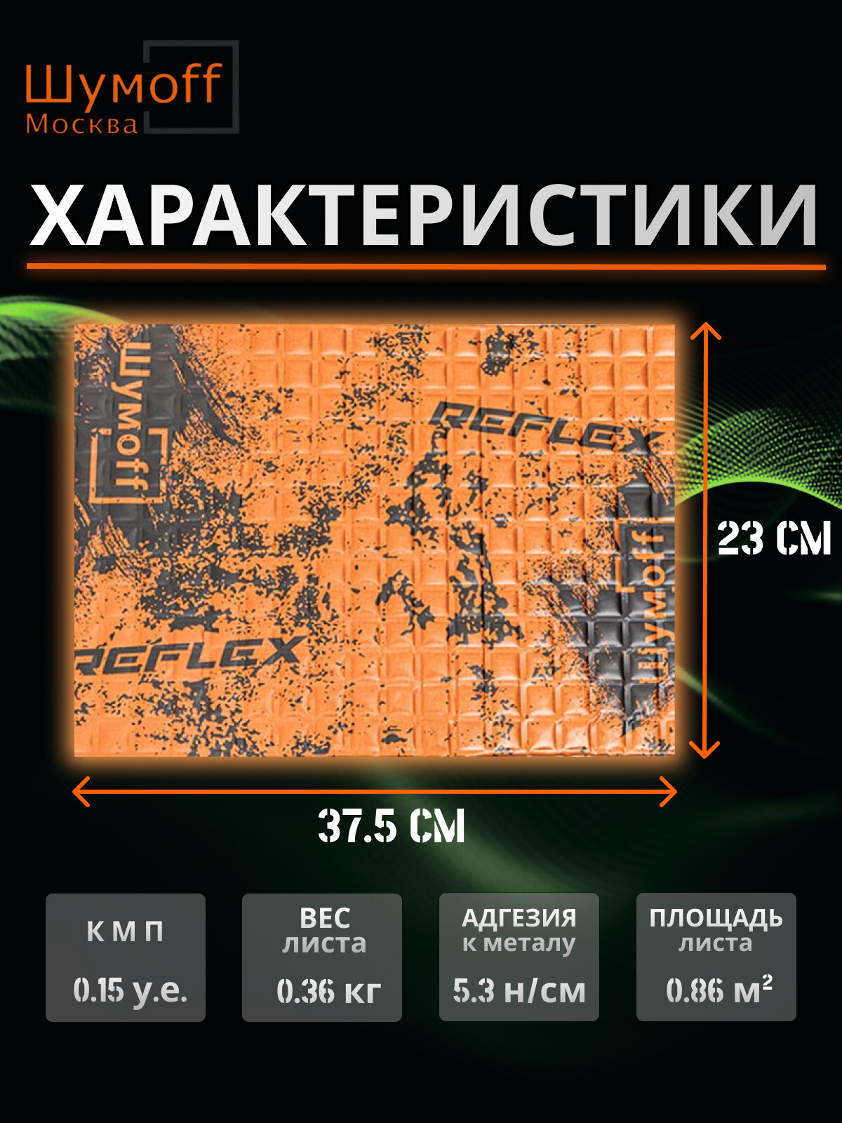 Виброизоляция для автомобиля Шумофф Reflex 4 - 7 листов 37.5 см х 23 см Вибродемпфер для пола, дверей, капота, багажника - толщина 3.6 мм