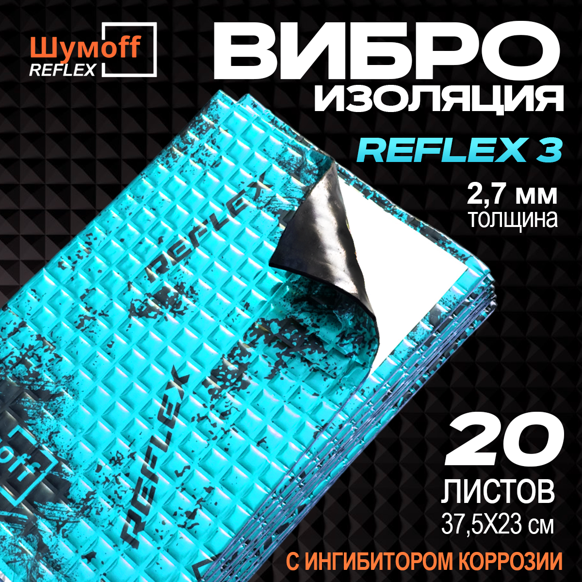 Виброизоляция для автомобиля Шумофф Reflex 3 - 10 листов 37.5 см х 23 см Вибродемпфер для пола, дверей, капота, багажника - толщина 2.7 мм
