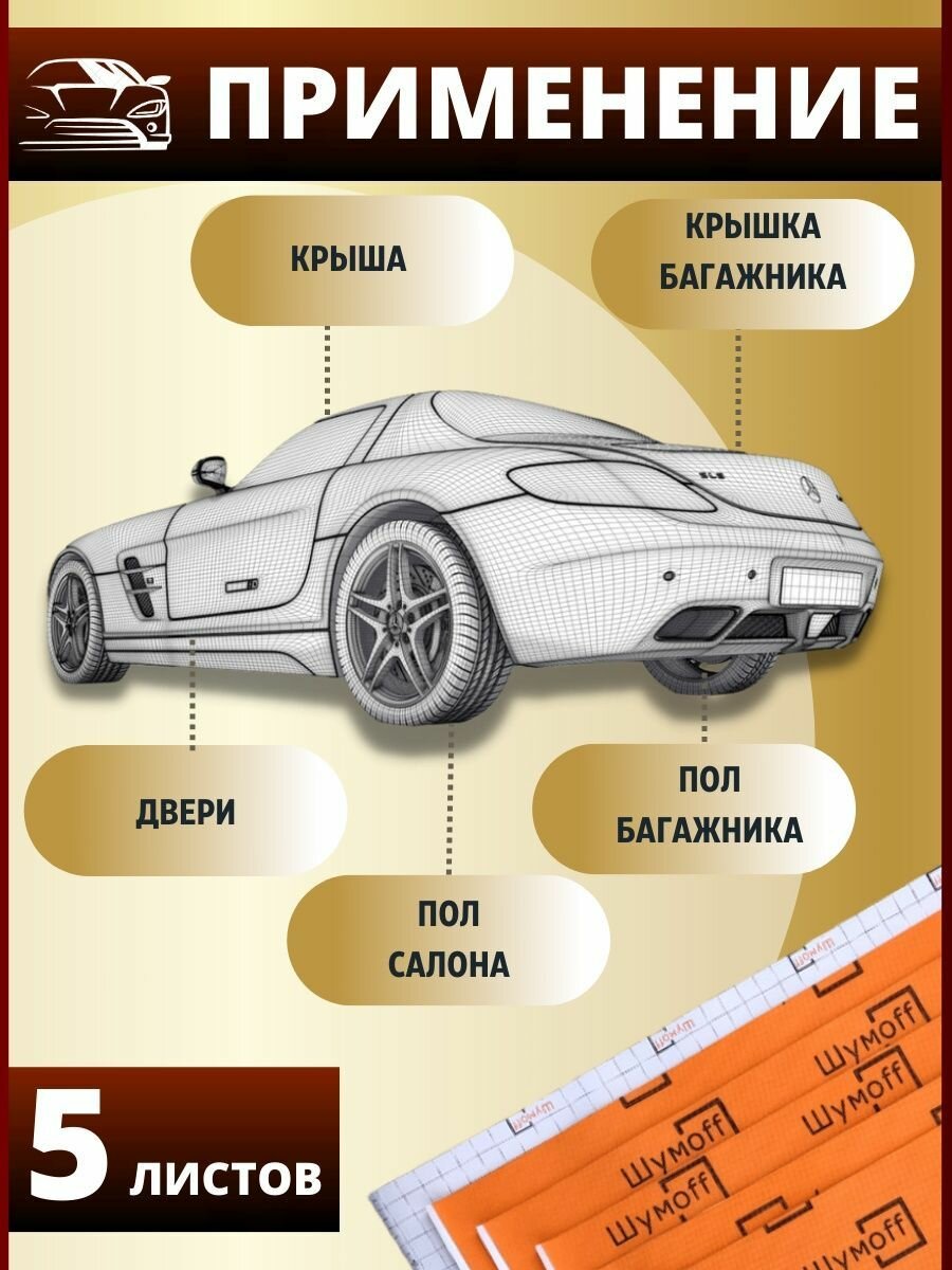 Виброизоляция / Шумоизоляция для автомобиля / дома / дачи Шумофф М3 5 Листов (0.5кв.м.)
