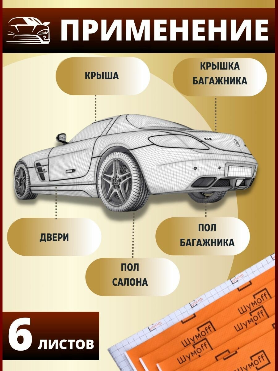 СохранитьШумоизоляция для автомобиля Шумофф П4В 4 мм - 6 листов. Теплоизоляция авто, звукоизоляция в машину, шумка интересное: