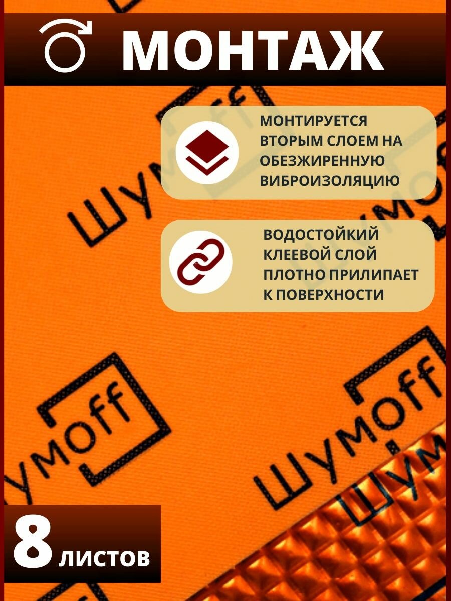 Виброизоляция Шумоff M3 / Шумоизоляция для автомобиля / квартиры / дачи (8 листов / 0,8кв.м)