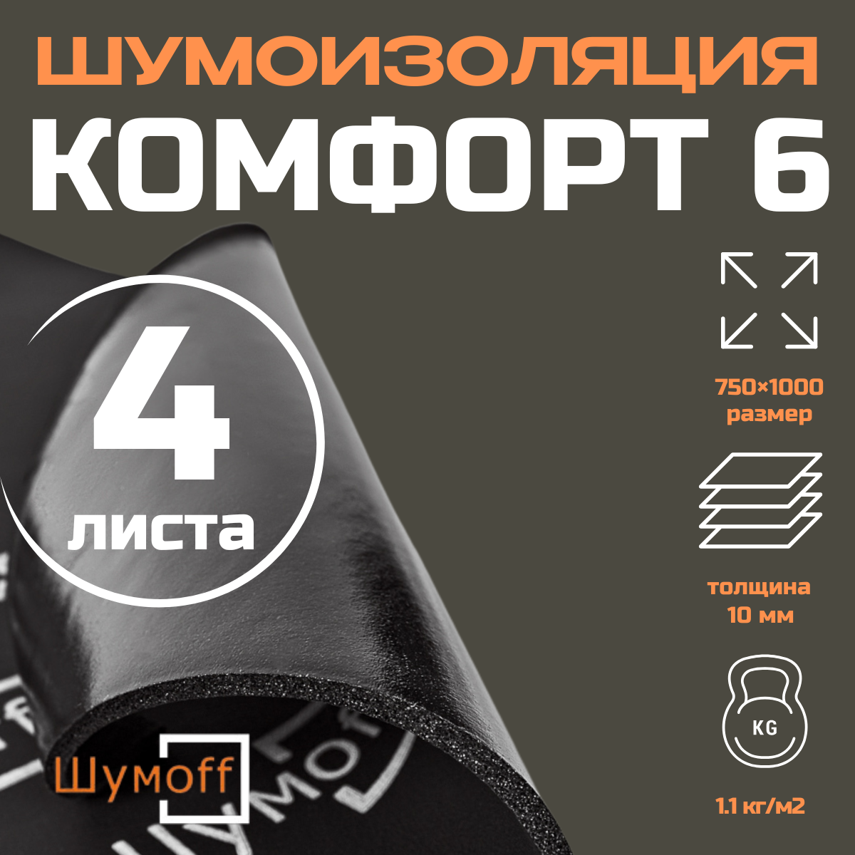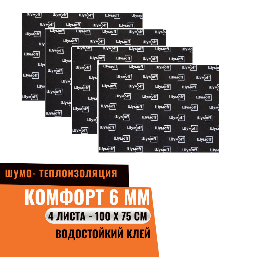 Купить Шумоизоляция Шумофф Комфорт 6, комплект 4 листа / 75х100см/ для автомобиля теплоизоляция