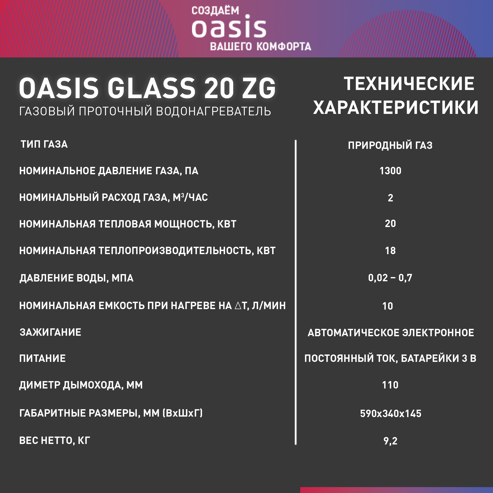 Газовый проточный водонагреватель Oasis Glass 20 ZG