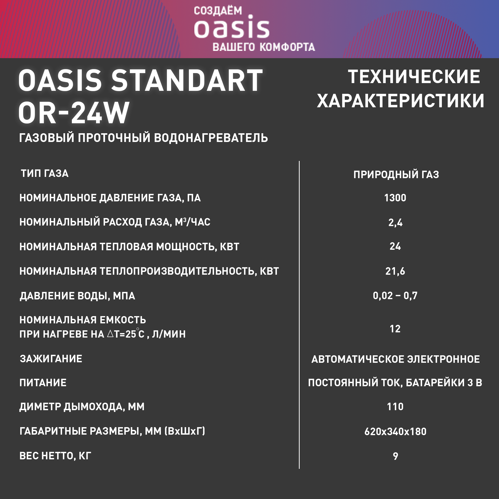 Ниже Вы можете прочитать отзывы на Проточный газовый водонагреватель Oasis OR-24W, ознакомится с подробными характеристиками, посмотреть интересные обзоры и фотографии на Проточный газовый водонагреватель Oasis OR-24W.