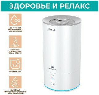 Увлажнитель воздуха TIMBERK T-HU5.2-A21E-W, ультразвуковой, 5,2 л, белый (T-HU5.2-A21E-W)