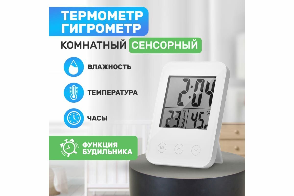 Сенсорный термогигрометр Halsa HLS-E-101 с часами и функцией будильника