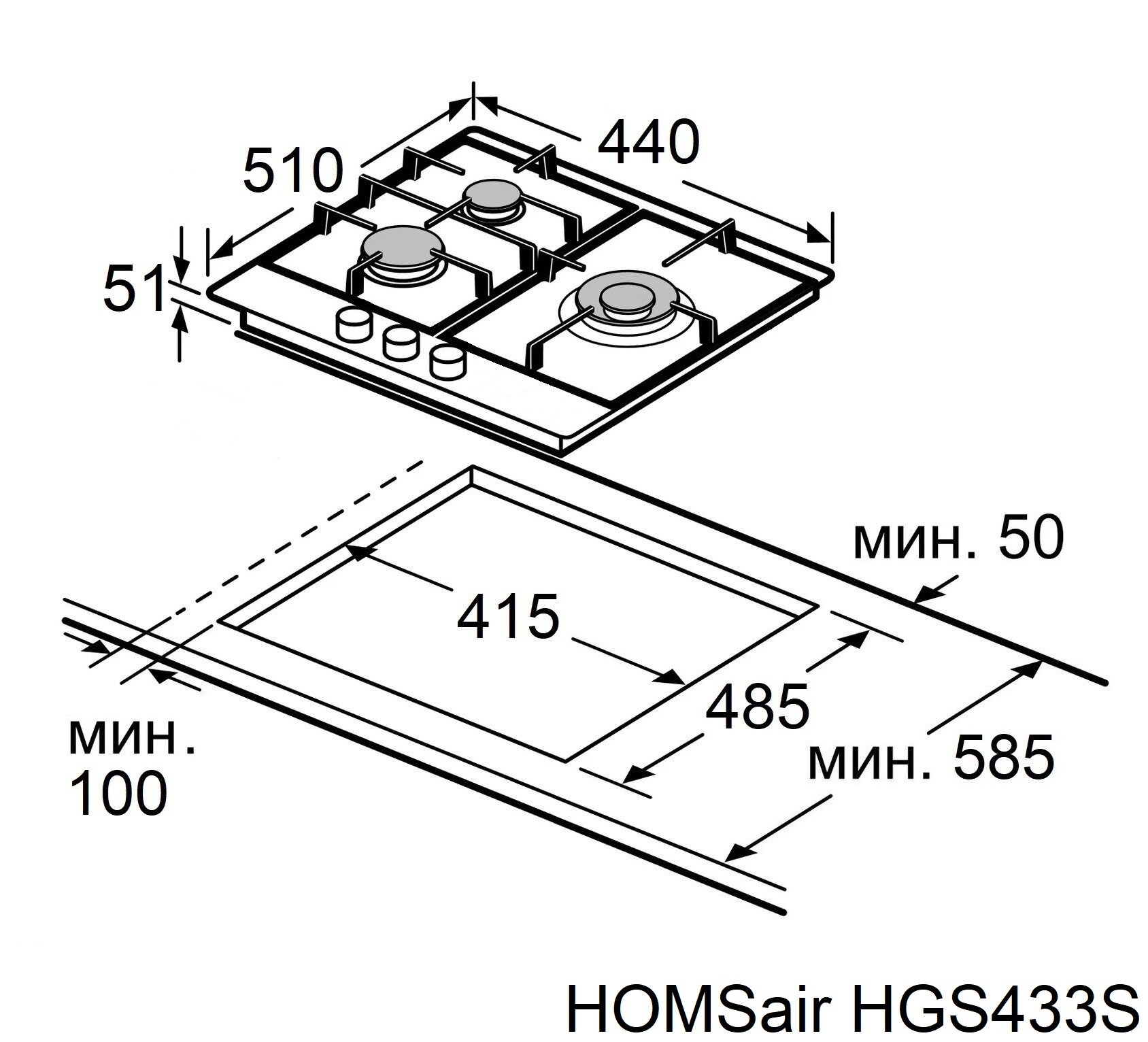 Встраиваемая газовая варочная панель HOMSair HGS433S