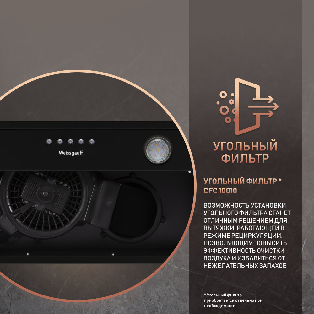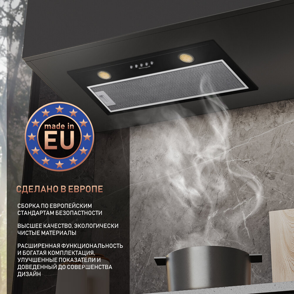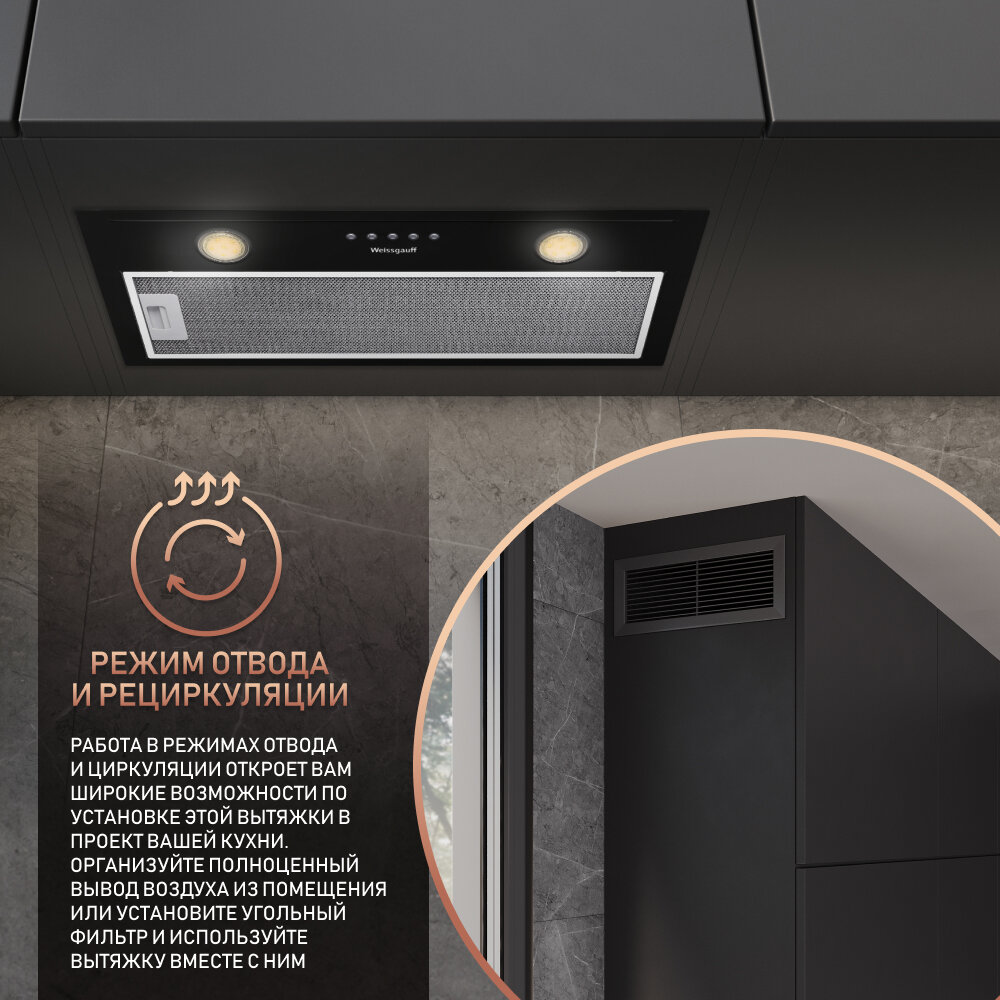 Купить Кухонная встраиваемая вытяжка Weissgauff Alpha 60 PB BL 3 года гарантии, Алюминиевый жировой фильтр, Низкий уровень шума