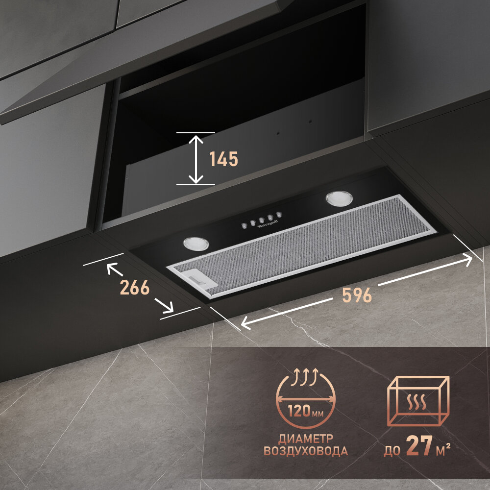 Покупали для встраиваемой кухни, отличная вытяжка, не видна при установке, довольны. И не дорого. Берите не пожалеете