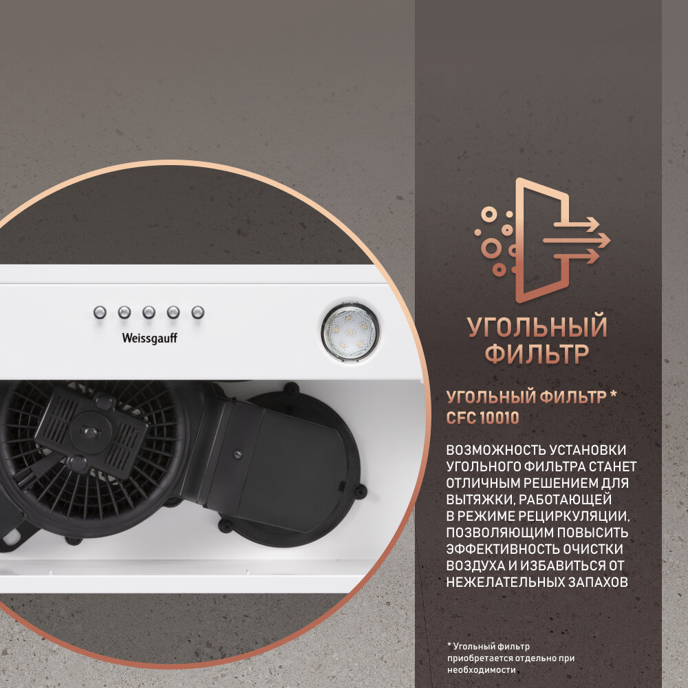 Купить Кухонная встраиваемая вытяжка Weissgauff Alpha 60 PB WH 3 года гарантии, Алюминиевый жировой фильтр, Низкий уровень шума