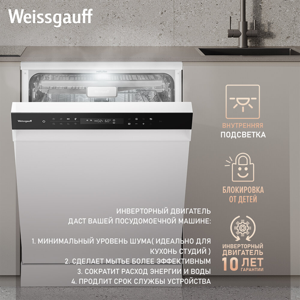 Посудомоечная машина с авто-открыванием и инвертором Weissgauff DW 6038 Inverter Touch,3 года гарантии,3 корзины, 14 комплектов, 9 программ, быстрый режим, режим стерилизации, полная защиты от протечек, Таймер до 24 часов,сенсорное управление интересное: