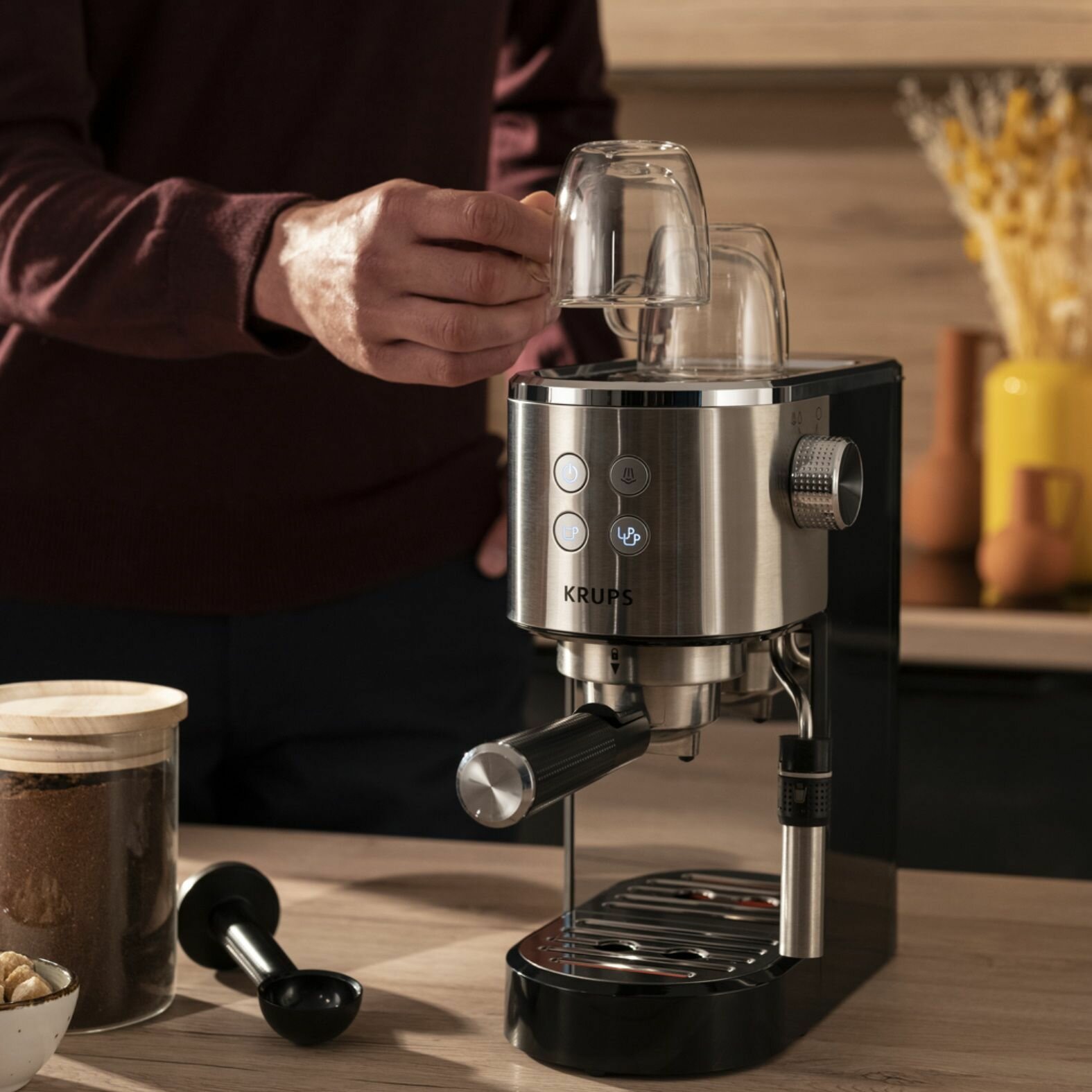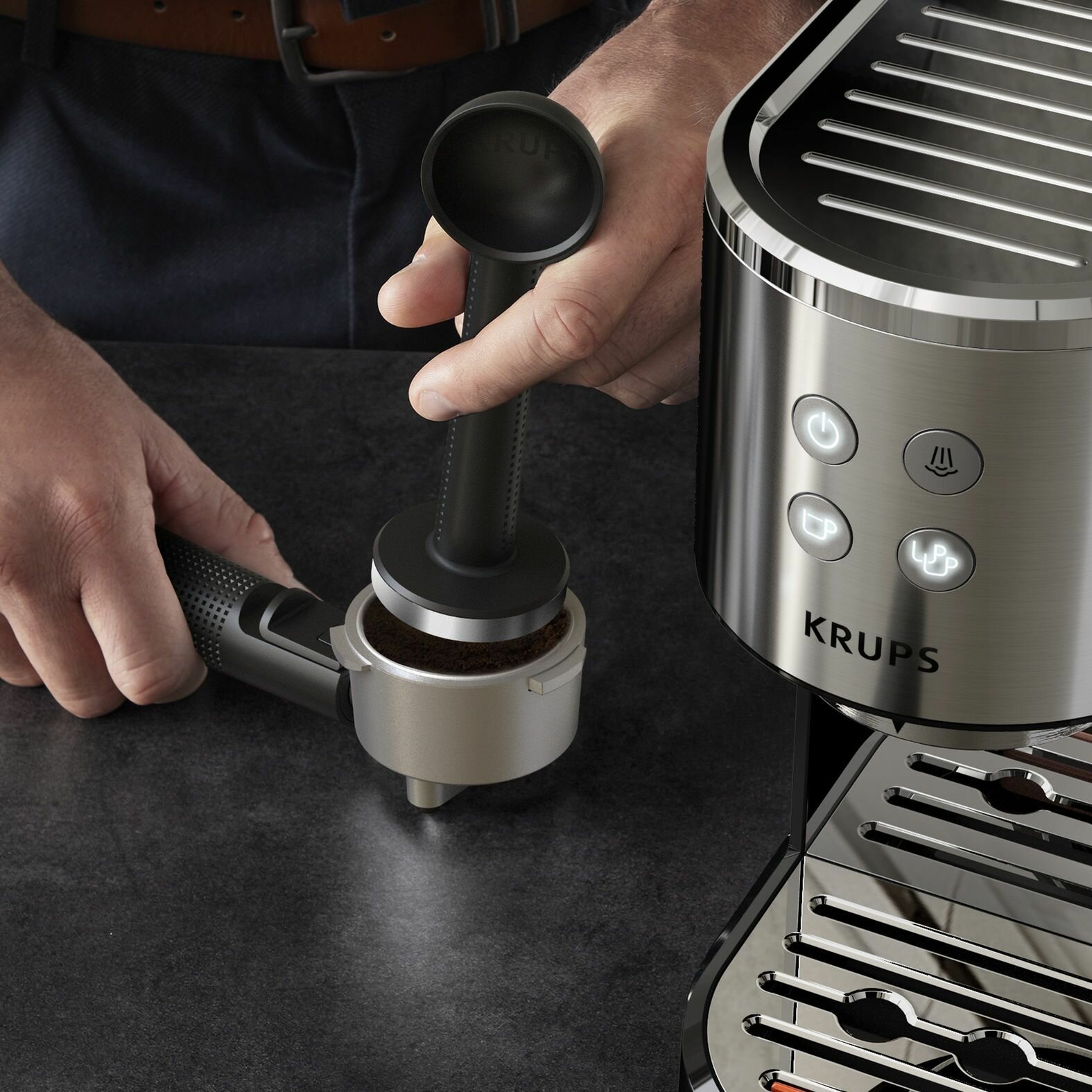 СохранитьКофеварка рожковая Krups Virtuoso+ XP444C10, с ручным капучинатором, давление 15 бар, объем резервуара для воды 1 л интересное: