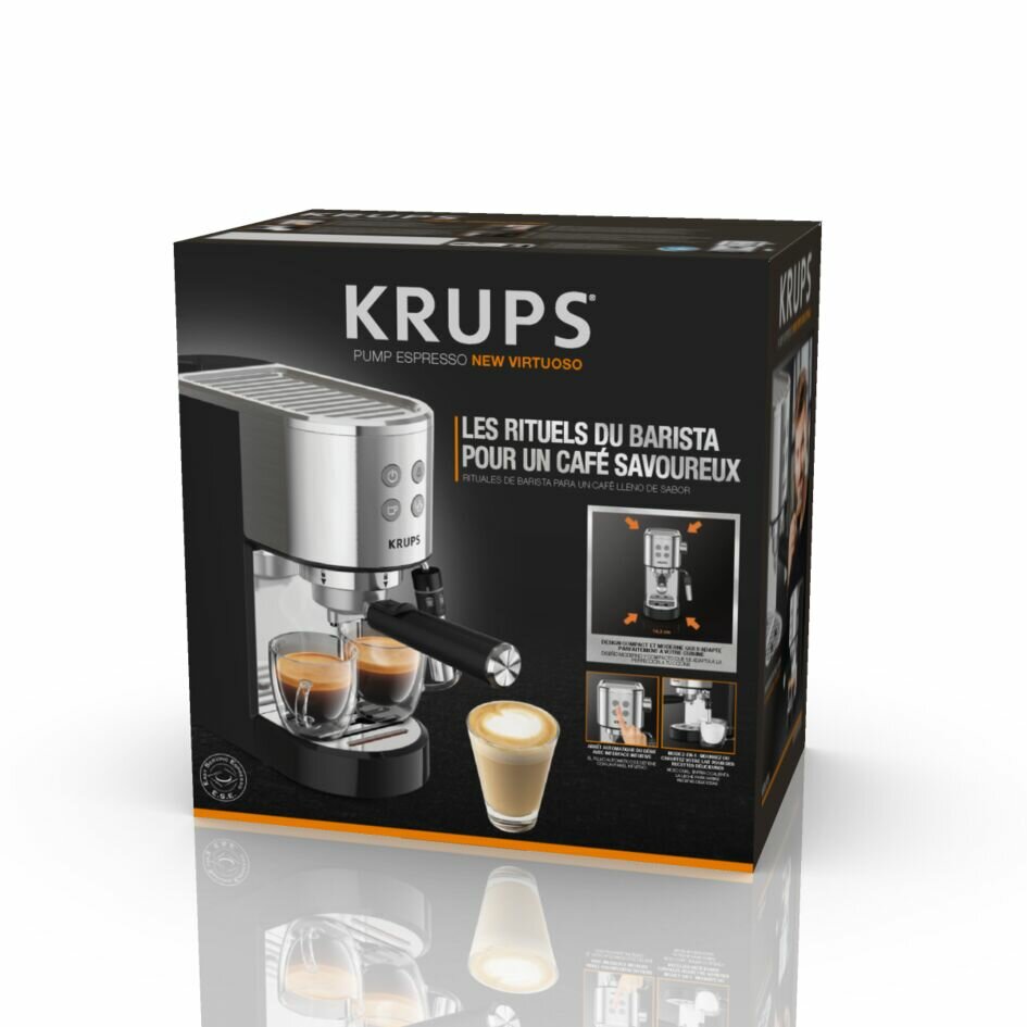 Купить Кофеварка рожковая Krups Virtuoso+ XP444C10, с ручным капучинатором, давление 15 бар, объем резервуара для воды 1 л
