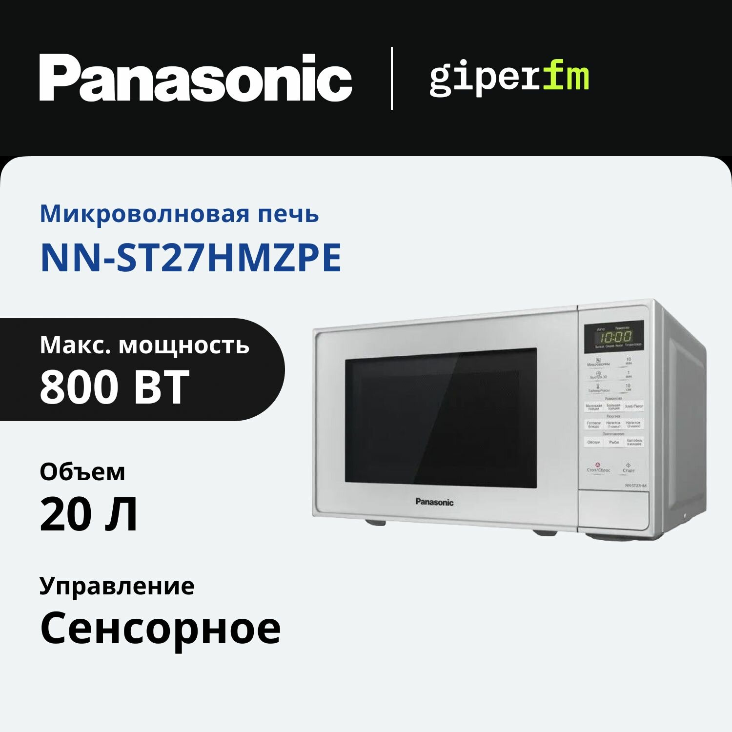 Ниже Вы можете прочитать отзывы на Микроволновая печь Panasonic NN-ST27HMZPE, объем 20 л, мощность микроволн 800 Вт, таймер, серебристая, ознакомится с подробными характеристиками, посмотреть интересные обзоры и фотографии на Микроволновая печь Panasonic NN-ST27HMZPE, объем 20 л, мощность микроволн 800 Вт, таймер, серебристая.