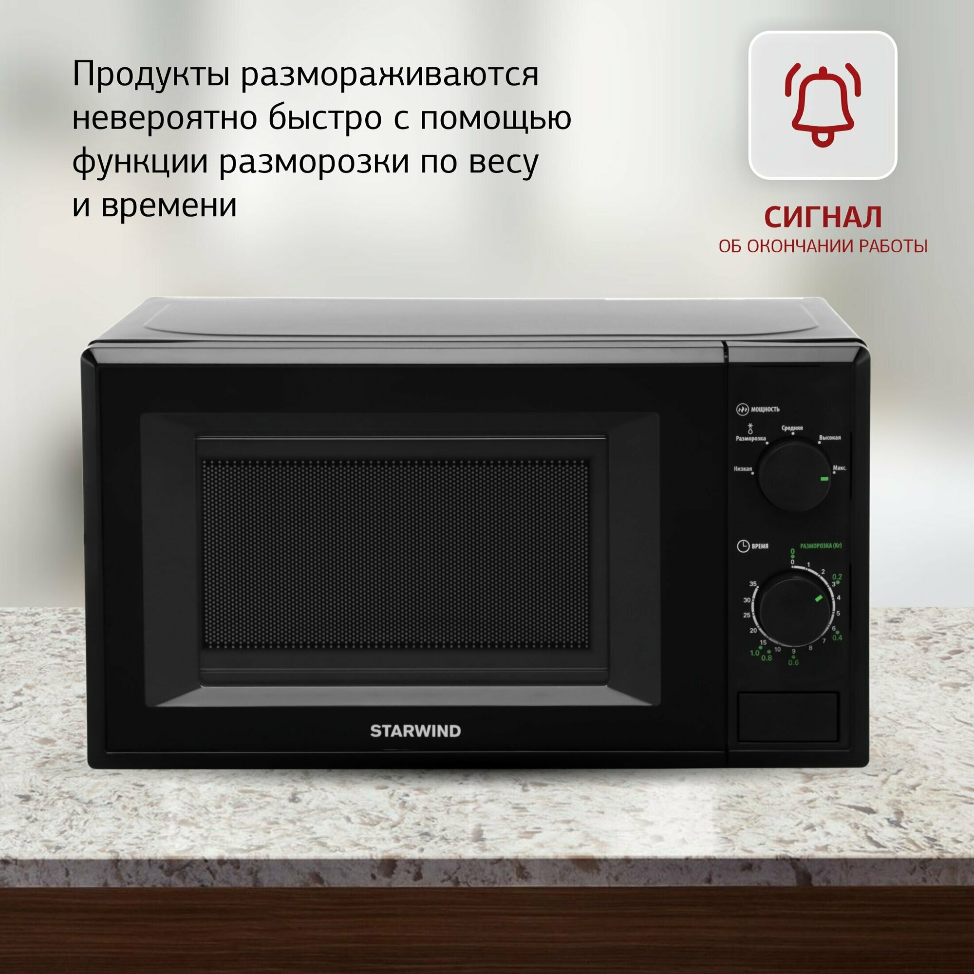 Микроволновая печь Starwind 20 л 700 Вт, механическое управление, черная (SWM5820)