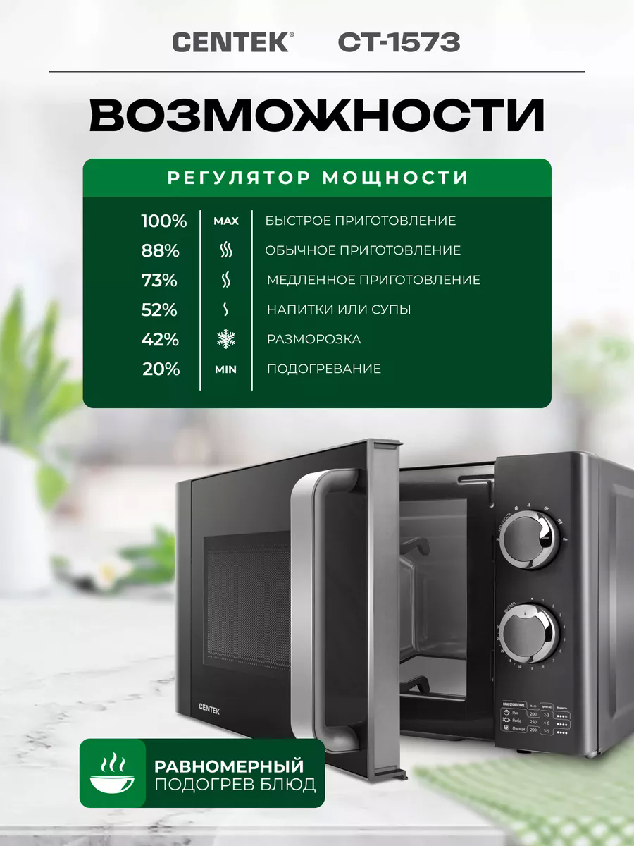 Ниже Вы можете прочитать отзывы на СВЧ Centek CT-1573 Gray, ознакомится с подробными характеристиками, посмотреть интересные обзоры и фотографии на СВЧ Centek CT-1573 Gray.