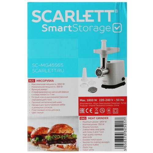 Мясорубка Scarlett SC-MG45S65 белый SC-MG45S65 .