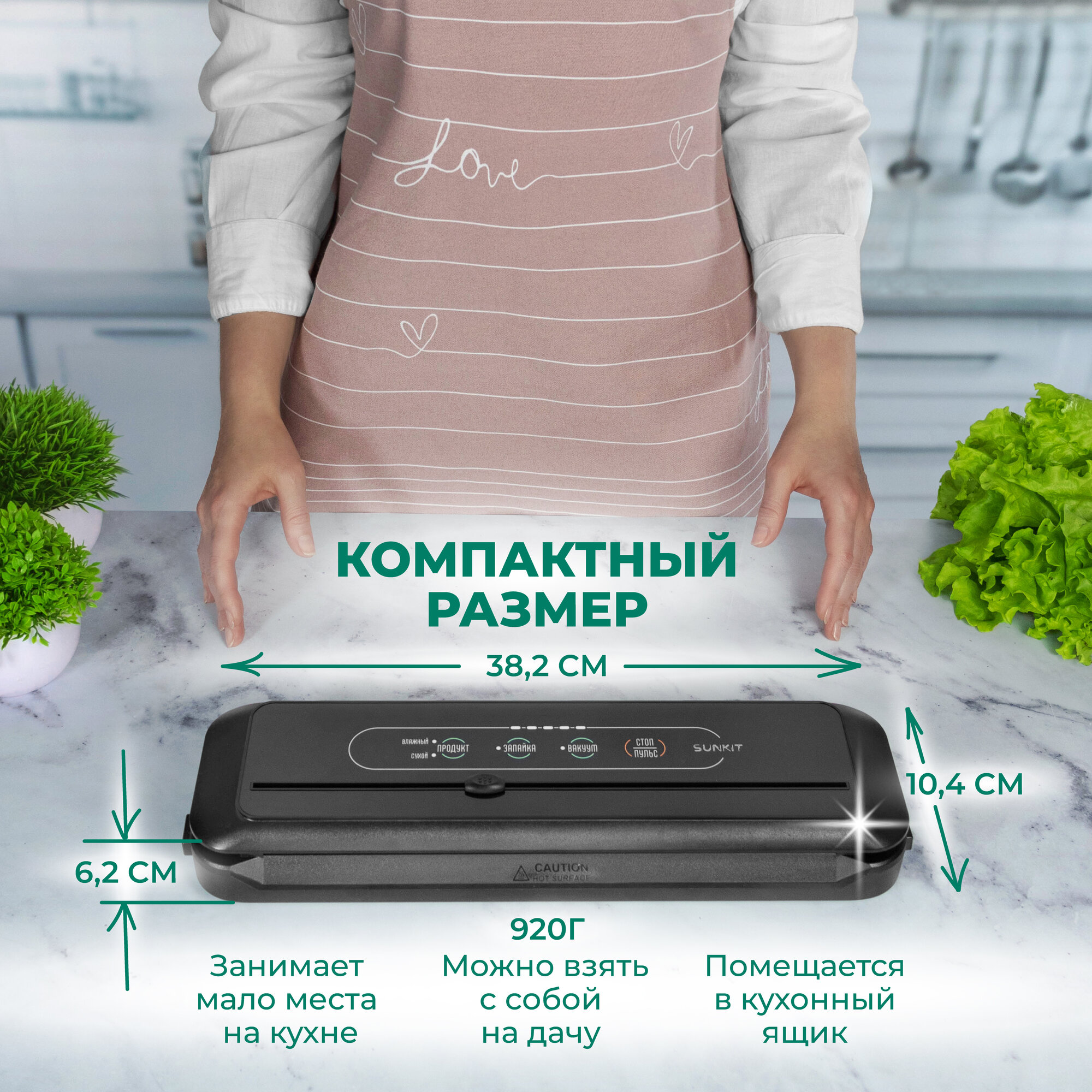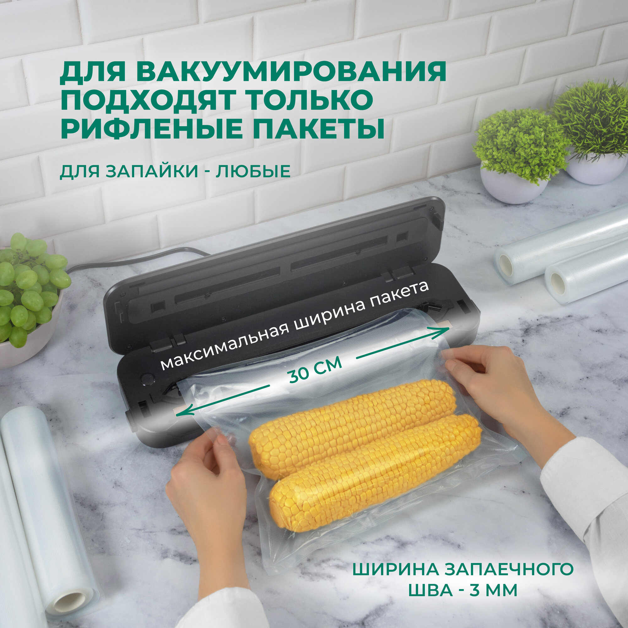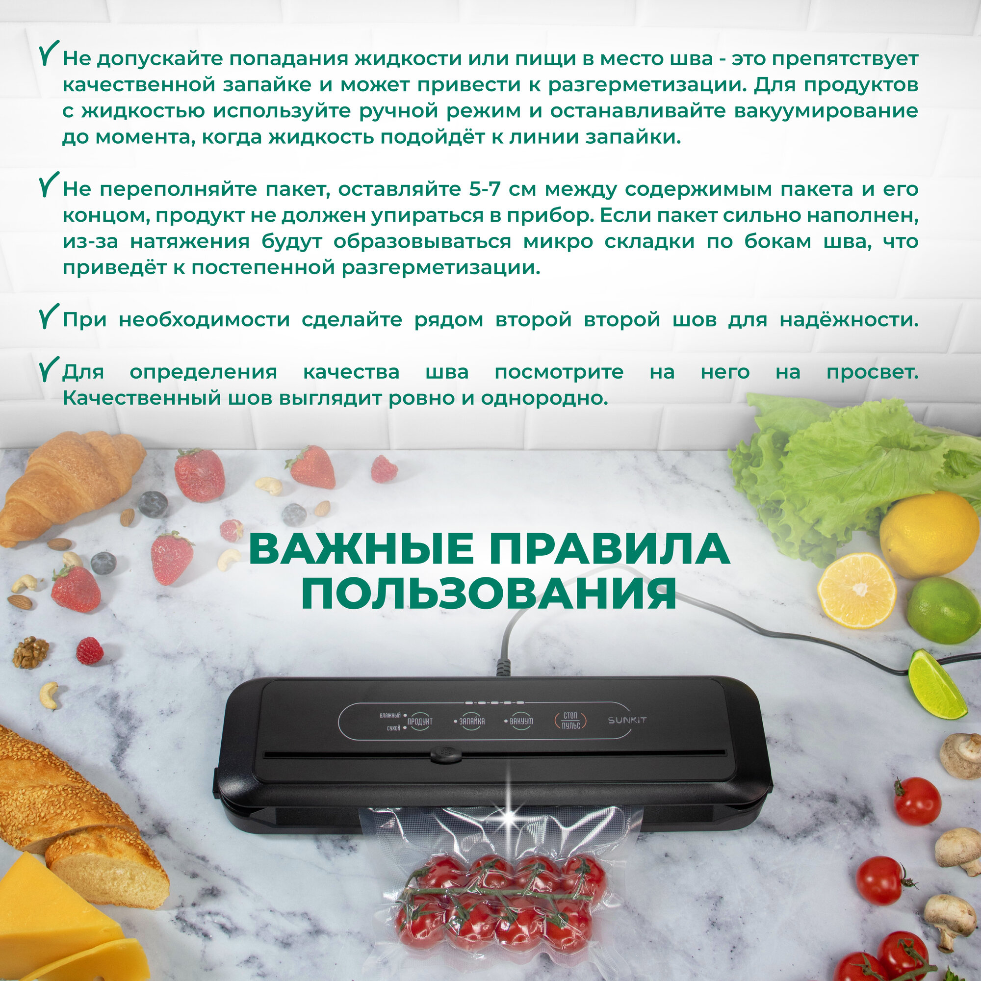 Вакуумный упаковщик: управление на русском, встроенный резак / Домашний вакууматор для продуктов SunKit SealMe S-60 +10 пакетов в подарок