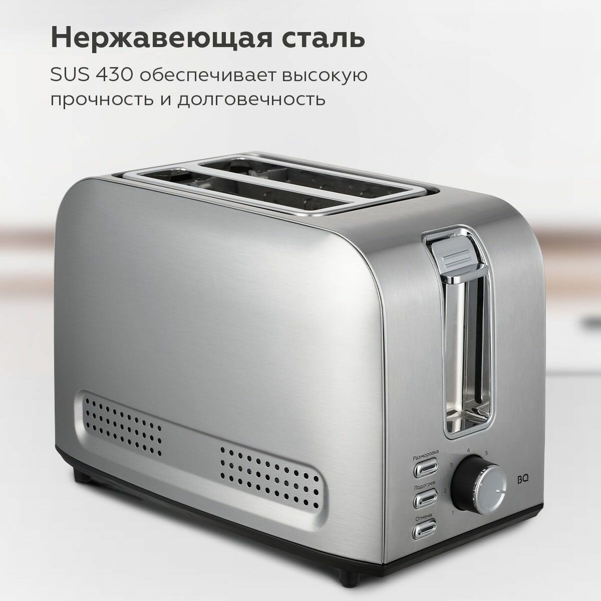 Тостер BQ (БИ-КЬЮ) T1009, 800 Вт, 2 тоста, 7 режимов, металлический, 86197956