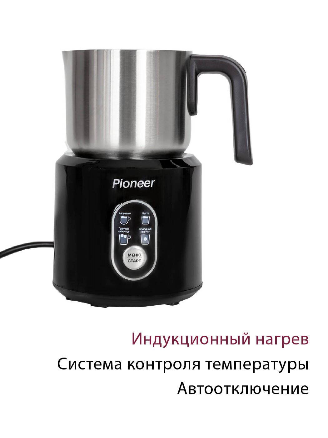Капучинатор Pioneer MF102 с 4 режимами работы, индукционным нагревом и автоотключением, 500 Вт